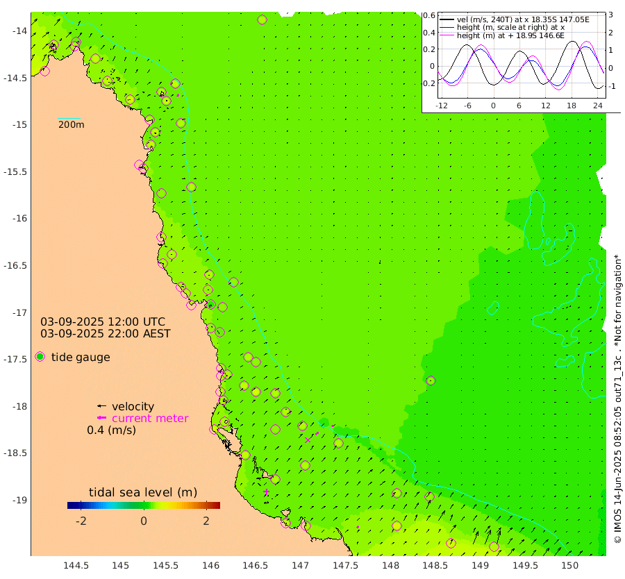 1cm/s -69T +11cm/s rms + 4cm/s -61T. GBRLSL 354m 12cm/s 24T +15cm/s rms + 2cm/s -84T. GBRLSH 32m 16cm/s 49T +15cm/s rms + 5cm/s -155T. GBRPPS 72m 7cm/s 40T +17cm/s rms + 13cm/s 115T. GBRMYR 223m 11cm/s 61T +18cm/s rms + 0cm/s -9T. NRSYON 29m 43cm Osprey Reef - West 52cm Stanley Island 23cm Pipon Islands 44cm Cape Melville 48cm Munro Reef 51cm Leggatt Island 57cm Normanby River 47cm Carter Reef 40cm Lizard Island (QLD) 55cm East Petherbridge Island 48cm North Direction Island 43cm Cape Flattery 45cm Ribbon Reef No.9 50cm Low Wooded Island 46cm Cape Bedford 32cm Endeavour River North 42cm Cooktown 41cm Cruiser Passage 31cm East Hope Island 51cm Bailay Creek 38cm Low Islets 42cm Port Douglas 39cm Palm Cove 39cm Yorkeys Knob 44cm Michaelmas Cay 31cm Euston Reef 43cm Cairns 34cm Green Island 20cm Fitzroy Island 37cm Sudbury Cay 32cm High Island 28cm Russell Island 38cm Peart Reef 34cm Nathan Reef 44cm Mourilyan Harbour 41cm Cowley Beach 44cm North Barnard Island 49cm Eddy Reef 58cm Beaver Reef 41cm Unnamed Reef No. 1 30cm Flinders Reef 43cm Clump Point 44cm Dunk Island 42cm Barnett Patches 45cm Goold Island 56cm Cardwell 35cm Britomart Reef 38cm Pith Reef 42cm Dip Reef 48cm Lucinda (Offshore) 41cm John Brewer Reef 44cm Albino Rock 38cm Shrimp Reef 31cm Jaguar Reef 47cm Townsville 44cm Cape Ferguson 60cm Stanley Reef 59cm Wallaby Reef 44cm Kennedy Reef