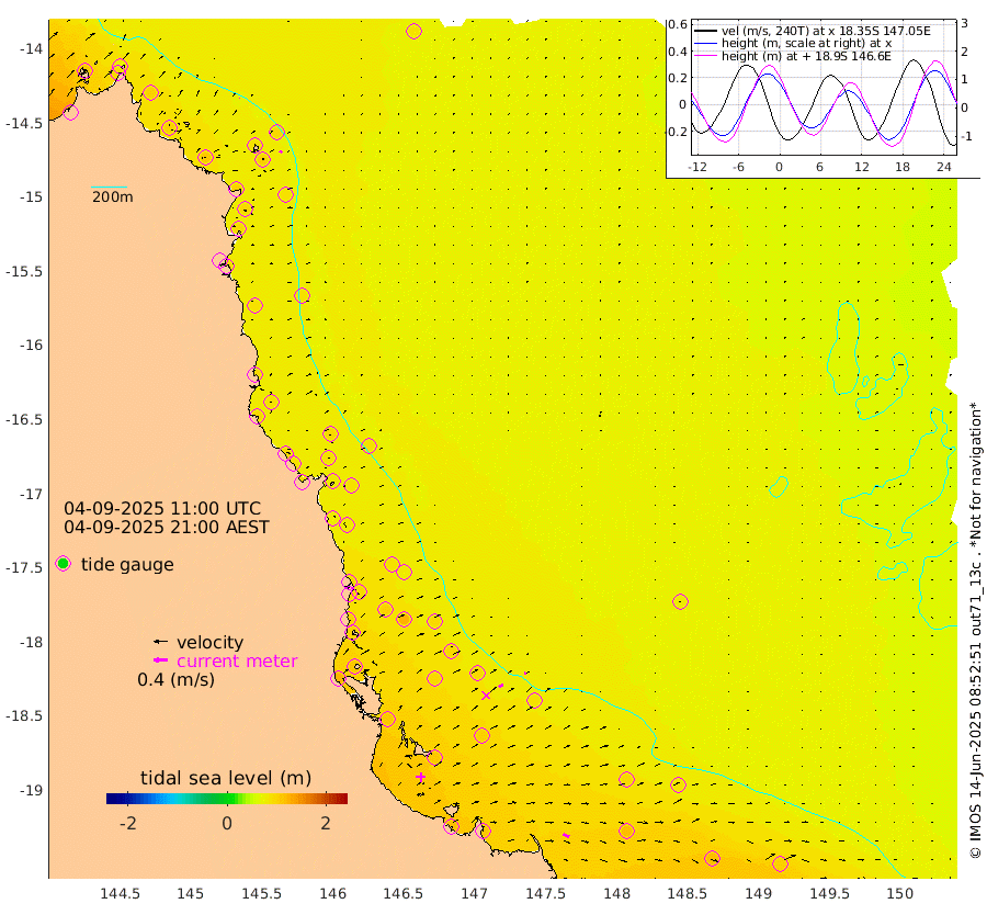 1cm/s -67T +11cm/s rms + 4cm/s -61T. GBRLSL 354m 6cm/s 42T +15cm/s rms + 2cm/s -84T. GBRLSH 32m 14cm/s 70T +15cm/s rms + 5cm/s -155T. GBRPPS 72m 5cm/s 62T +17cm/s rms + 13cm/s 115T. GBRMYR 223m 19cm/s 113T +18cm/s rms + 0cm/s -9T. NRSYON 29m 83cm Osprey Reef - West 106cm Stanley Island 68cm Pipon Islands 94cm Cape Melville 99cm Munro Reef 100cm Leggatt Island 114cm Normanby River 97cm Carter Reef 90cm Lizard Island (QLD) 109cm East Petherbridge Island 99cm North Direction Island 98cm Cape Flattery 89cm Ribbon Reef No.9 95cm Low Wooded Island 94cm Cape Bedford 54cm Endeavour River North 93cm Cooktown 85cm Cruiser Passage 89cm East Hope Island 96cm Bailay Creek 87cm Low Islets 94cm Port Douglas 90cm Palm Cove 86cm Yorkeys Knob 93cm Michaelmas Cay 86cm Euston Reef 97cm Cairns 84cm Green Island 77cm Fitzroy Island 90cm Sudbury Cay 82cm High Island 77cm Russell Island 88cm Peart Reef 81cm Nathan Reef 97cm Mourilyan Harbour 99cm Cowley Beach 97cm North Barnard Island 102cm Eddy Reef 127cm Beaver Reef 92cm Unnamed Reef No. 1 77cm Flinders Reef 101cm Clump Point 100cm Dunk Island 94cm Barnett Patches 105cm Goold Island 124cm Cardwell 92cm Britomart Reef 93cm Pith Reef 88cm Dip Reef 112cm Lucinda (Offshore) 98cm John Brewer Reef 111cm Albino Rock 97cm Shrimp Reef 86cm Jaguar Reef 116cm Townsville 110cm Cape Ferguson 114cm Stanley Reef 114cm Wallaby Reef 102cm Kennedy Reef
