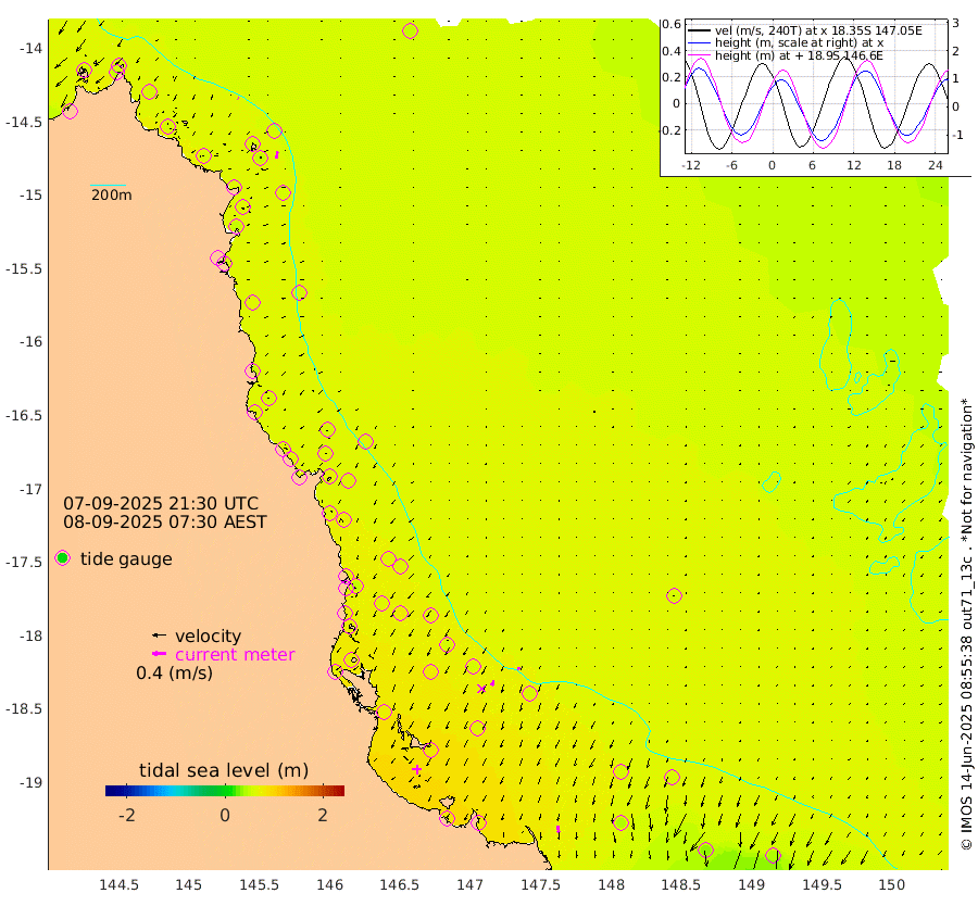 2cm/s 129T +11cm/s rms + 4cm/s -61T. GBRLSL 354m 20cm/s -170T +15cm/s rms + 2cm/s -84T. GBRLSH 32m 16cm/s -155T +15cm/s rms + 5cm/s -155T. GBRPPS 72m 7cm/s -155T +17cm/s rms + 13cm/s 115T. GBRMYR 223m 20cm/s 173T +18cm/s rms + 0cm/s -9T. NRSYON 29m 50cm Osprey Reef - West 60cm Stanley Island 56cm Pipon Islands 51cm Cape Melville 59cm Munro Reef 59cm Leggatt Island 65cm Normanby River 58cm Carter Reef 54cm Lizard Island (QLD) 55cm East Petherbridge Island 51cm North Direction Island 61cm Cape Flattery 56cm Ribbon Reef No.9 61cm Low Wooded Island 51cm Cape Bedford 20cm Endeavour River North 58cm Cooktown 56cm Cruiser Passage 66cm East Hope Island 47cm Bailay Creek 57cm Low Islets 63cm Port Douglas 66cm Palm Cove 63cm Yorkeys Knob 56cm Michaelmas Cay 63cm Euston Reef 65cm Cairns 67cm Green Island 72cm Fitzroy Island 63cm Sudbury Cay 64cm High Island 68cm Russell Island 65cm Peart Reef 62cm Nathan Reef 62cm Mourilyan Harbour 65cm Cowley Beach 51cm North Barnard Island 61cm Eddy Reef 81cm Beaver Reef 62cm Unnamed Reef No. 1 56cm Flinders Reef 68cm Clump Point 70cm Dunk Island 56cm Barnett Patches 73cm Goold Island 73cm Cardwell 76cm Britomart Reef 59cm Pith Reef 58cm Dip Reef 74cm Lucinda (Offshore) 66cm John Brewer Reef 77cm Albino Rock 58cm Shrimp Reef 59cm Jaguar Reef 81cm Townsville 76cm Cape Ferguson 44cm Stanley Reef 32cm Wallaby Reef 42cm Kennedy Reef