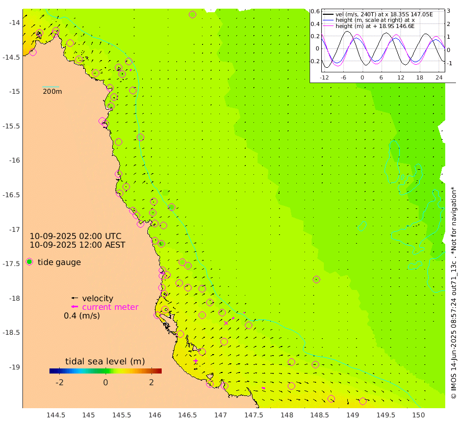 1cm/s 87T +11cm/s rms + 4cm/s -61T. GBRLSL 354m 13cm/s 27T +15cm/s rms + 2cm/s -84T. GBRLSH 32m 16cm/s 56T +15cm/s rms + 5cm/s -155T. GBRPPS 72m 5cm/s 53T +17cm/s rms + 13cm/s 115T. GBRMYR 223m 20cm/s 113T +18cm/s rms + 0cm/s -9T. NRSYON 29m 37cm Osprey Reef - West 49cm Stanley Island 52cm Pipon Islands 47cm Cape Melville 53cm Munro Reef 52cm Leggatt Island 57cm Normanby River 48cm Carter Reef 43cm Lizard Island (QLD) 42cm East Petherbridge Island 37cm North Direction Island 48cm Cape Flattery 41cm Ribbon Reef No.9 38cm Low Wooded Island 36cm Cape Bedford 23cm Endeavour River North 44cm Cooktown 37cm Cruiser Passage 39cm East Hope Island 44cm Bailay Creek 39cm Low Islets 46cm Port Douglas 42cm Palm Cove 40cm Yorkeys Knob 44cm Michaelmas Cay 28cm Euston Reef 48cm Cairns 34cm Green Island 46cm Fitzroy Island 43cm Sudbury Cay 39cm High Island 25cm Russell Island 37cm Peart Reef 37cm Nathan Reef 49cm Mourilyan Harbour 46cm Cowley Beach 63cm North Barnard Island 52cm Eddy Reef 64cm Beaver Reef 42cm Unnamed Reef No. 1 31cm Flinders Reef 51cm Clump Point 56cm Dunk Island 39cm Barnett Patches 55cm Goold Island 73cm Cardwell 43cm Britomart Reef 41cm Pith Reef 38cm Dip Reef 61cm Lucinda (Offshore) 53cm John Brewer Reef 58cm Albino Rock 48cm Shrimp Reef 44cm Jaguar Reef 63cm Townsville 58cm Cape Ferguson 65cm Stanley Reef 74cm Wallaby Reef 68cm Kennedy Reef