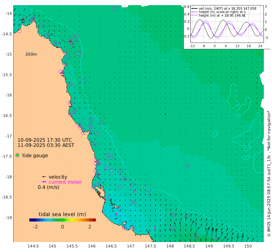 1cm/s -18T +11cm/s rms + 4cm/s -61T. GBRLSL 354m 14cm/s 11T +15cm/s rms + 2cm/s -84T. GBRLSH 32m 11cm/s 13T +15cm/s rms + 5cm/s -155T. GBRPPS 72m 6cm/s 27T +17cm/s rms + 13cm/s 115T. GBRMYR 223m 22cm/s -20T +18cm/s rms + 0cm/s -9T. NRSYON 29m -66cm Osprey Reef - West -67cm Stanley Island -51cm Pipon Islands -60cm Cape Melville -65cm Munro Reef -70cm Leggatt Island -76cm Normanby River -65cm Carter Reef -62cm Lizard Island (QLD) -64cm East Petherbridge Island -58cm North Direction Island -72cm Cape Flattery -70cm Ribbon Reef No.9 -75cm Low Wooded Island -59cm Cape Bedford -39cm Endeavour River North -68cm Cooktown -69cm Cruiser Passage -67cm East Hope Island -51cm Bailay Creek -63cm Low Islets -71cm Port Douglas -74cm Palm Cove -72cm Yorkeys Knob -68cm Michaelmas Cay -66cm Euston Reef -74cm Cairns -72cm Green Island -73cm Fitzroy Island -73cm Sudbury Cay -70cm High Island -69cm Russell Island -72cm Peart Reef -68cm Nathan Reef -72cm Mourilyan Harbour -72cm Cowley Beach -61cm North Barnard Island -77cm Eddy Reef -94cm Beaver Reef -73cm Unnamed Reef No. 1 -71cm Flinders Reef -77cm Clump Point -80cm Dunk Island -65cm Barnett Patches -83cm Goold Island -84cm Cardwell -81cm Britomart Reef -69cm Pith Reef -78cm Dip Reef -83cm Lucinda (Offshore) -72cm John Brewer Reef -86cm Albino Rock -65cm Shrimp Reef -67cm Jaguar Reef -89cm Townsville -84cm Cape Ferguson -59cm Stanley Reef -50cm Wallaby Reef -62cm Kennedy Reef