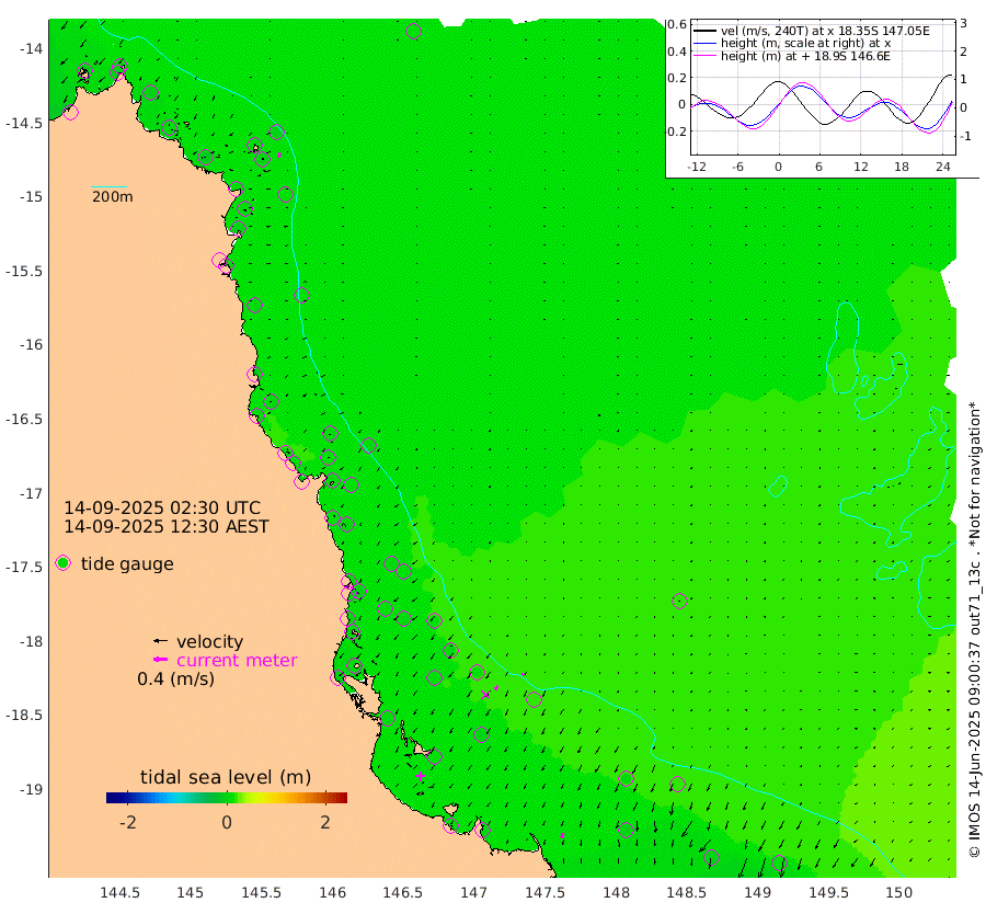 0cm/s -115T +11cm/s rms + 4cm/s -61T. GBRLSL 354m 15cm/s -165T +15cm/s rms + 2cm/s -84T. GBRLSH 32m 12cm/s -138T +15cm/s rms + 5cm/s -155T. GBRPPS 72m 6cm/s -131T +17cm/s rms + 13cm/s 115T. GBRMYR 223m 13cm/s -175T +18cm/s rms + 0cm/s -9T. NRSYON 29m 12cm Osprey Reef - West -9cm Stanley Island 6cm Pipon Islands -2cm Cape Melville 0cm Munro Reef 1cm Leggatt Island -6cm Normanby River -1cm Carter Reef 3cm Lizard Island (QLD) -10cm East Petherbridge Island -6cm North Direction Island 1cm Cape Flattery 8cm Ribbon Reef No.9 4cm Low Wooded Island -7cm Cape Bedford 11cm Endeavour River North 3cm Cooktown 10cm Cruiser Passage 4cm East Hope Island -7cm Bailay Creek 2cm Low Islets 5cm Port Douglas 9cm Palm Cove 10cm Yorkeys Knob 3cm Michaelmas Cay 4cm Euston Reef 5cm Cairns 9cm Green Island 14cm Fitzroy Island 9cm Sudbury Cay 8cm High Island 3cm Russell Island 4cm Peart Reef 10cm Nathan Reef 6cm Mourilyan Harbour 3cm Cowley Beach -2cm North Barnard Island 12cm Eddy Reef 7cm Beaver Reef 11cm Unnamed Reef No. 1 16cm Flinders Reef 6cm Clump Point 5cm Dunk Island 6cm Barnett Patches 6cm Goold Island -2cm Cardwell 10cm Britomart Reef 11cm Pith Reef 18cm Dip Reef 4cm Lucinda (Offshore) -4cm John Brewer Reef 9cm Albino Rock 5cm Shrimp Reef 15cm Jaguar Reef 4cm Townsville 6cm Cape Ferguson -5cm Stanley Reef -2cm Wallaby Reef 12cm Kennedy Reef