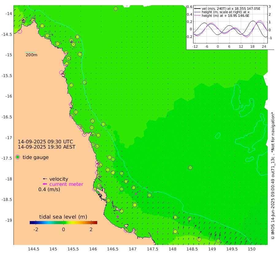 0cm/s 72T +11cm/s rms + 4cm/s -61T. GBRLSL 354m 11cm/s 22T +15cm/s rms + 2cm/s -84T. GBRLSH 32m 11cm/s 52T +15cm/s rms + 5cm/s -155T. GBRPPS 72m 6cm/s 46T +17cm/s rms + 13cm/s 115T. GBRMYR 223m 10cm/s 15T +18cm/s rms + 0cm/s -9T. NRSYON 29m 27cm Osprey Reef - West 46cm Stanley Island 7cm Pipon Islands 38cm Cape Melville 39cm Munro Reef 38cm Leggatt Island 39cm Normanby River 42cm Carter Reef 35cm Lizard Island (QLD) 47cm East Petherbridge Island 42cm North Direction Island 38cm Cape Flattery 32cm Ribbon Reef No.9 32cm Low Wooded Island 41cm Cape Bedford 14cm Endeavour River North 35cm Cooktown 29cm Cruiser Passage 36cm East Hope Island 37cm Bailay Creek 34cm Low Islets 33cm Port Douglas 30cm Palm Cove 29cm Yorkeys Knob 37cm Michaelmas Cay 36cm Euston Reef 34cm Cairns 31cm Green Island 25cm Fitzroy Island 33cm Sudbury Cay 29cm High Island 33cm Russell Island 34cm Peart Reef 28cm Nathan Reef 34cm Mourilyan Harbour 34cm Cowley Beach 37cm North Barnard Island 30cm Eddy Reef 44cm Beaver Reef 30cm Unnamed Reef No. 1 27cm Flinders Reef 33cm Clump Point 34cm Dunk Island 33cm Barnett Patches 34cm Goold Island 41cm Cardwell 29cm Britomart Reef 31cm Pith Reef 27cm Dip Reef 36cm Lucinda (Offshore) 42cm John Brewer Reef 32cm Albino Rock 35cm Shrimp Reef 25cm Jaguar Reef 36cm Townsville 34cm Cape Ferguson 42cm Stanley Reef 40cm Wallaby Reef 27cm Kennedy Reef