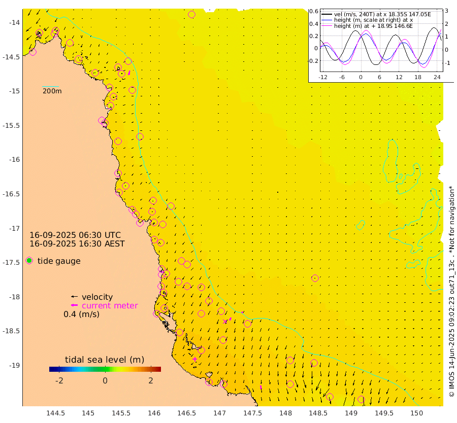 1cm/s -56T +11cm/s rms + 4cm/s -61T. GBRLSL 354m 27cm/s -169T +15cm/s rms + 2cm/s -84T. GBRLSH 32m 18cm/s -157T +15cm/s rms + 5cm/s -155T. GBRPPS 72m 9cm/s -151T +17cm/s rms + 13cm/s 115T. GBRMYR 223m 22cm/s 170T +18cm/s rms + 0cm/s -9T. NRSYON 29m 76cm Osprey Reef - West 77cm Stanley Island 68cm Pipon Islands 74cm Cape Melville 75cm Munro Reef 77cm Leggatt Island 80cm Normanby River 78cm Carter Reef 83cm Lizard Island (QLD) 73cm East Petherbridge Island 75cm North Direction Island 79cm Cape Flattery 78cm Ribbon Reef No.9 87cm Low Wooded Island 71cm Cape Bedford 51cm Endeavour River North 83cm Cooktown 81cm Cruiser Passage 89cm East Hope Island 69cm Bailay Creek 78cm Low Islets 86cm Port Douglas 91cm Palm Cove 93cm Yorkeys Knob 78cm Michaelmas Cay 76cm Euston Reef 87cm Cairns 91cm Green Island 88cm Fitzroy Island 86cm Sudbury Cay 94cm High Island 86cm Russell Island 91cm Peart Reef 89cm Nathan Reef 87cm Mourilyan Harbour 91cm Cowley Beach 80cm North Barnard Island 82cm Eddy Reef 111cm Beaver Reef 91cm Unnamed Reef No. 1 84cm Flinders Reef 93cm Clump Point 96cm Dunk Island 92cm Barnett Patches 102cm Goold Island 94cm Cardwell 104cm Britomart Reef 88cm Pith Reef 90cm Dip Reef 98cm Lucinda (Offshore) 90cm John Brewer Reef 99cm Albino Rock 92cm Shrimp Reef 90cm Jaguar Reef 105cm Townsville 104cm Cape Ferguson 88cm Stanley Reef 75cm Wallaby Reef 87cm Kennedy Reef