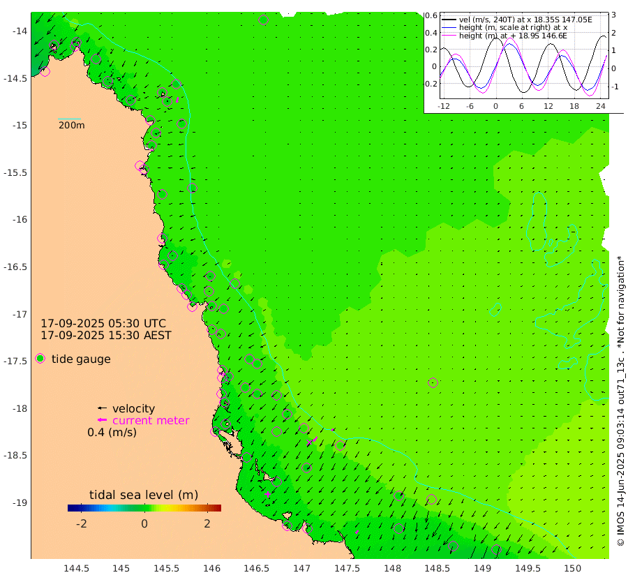 1cm/s -66T +11cm/s rms + 4cm/s -61T. GBRLSL 354m 25cm/s -161T +15cm/s rms + 2cm/s -84T. GBRLSH 32m 25cm/s -138T +15cm/s rms + 5cm/s -155T. GBRPPS 72m 12cm/s -138T +17cm/s rms + 13cm/s 115T. GBRMYR 223m 17cm/s -143T +18cm/s rms + 0cm/s -9T. NRSYON 29m 12cm Osprey Reef - West -9cm Stanley Island -1cm Pipon Islands -2cm Cape Melville -7cm Munro Reef -6cm Leggatt Island -14cm Normanby River -1cm Carter Reef 7cm Lizard Island (QLD) -6cm East Petherbridge Island 2cm North Direction Island 2cm Cape Flattery 8cm Ribbon Reef No.9 14cm Low Wooded Island 2cm Cape Bedford 9cm Endeavour River North 7cm Cooktown 14cm Cruiser Passage 15cm East Hope Island -3cm Bailay Creek 5cm Low Islets 8cm Port Douglas 14cm Palm Cove 14cm Yorkeys Knob 5cm Michaelmas Cay 21cm Euston Reef 7cm Cairns 19cm Green Island 13cm Fitzroy Island 12cm Sudbury Cay 18cm High Island 19cm Russell Island 10cm Peart Reef 13cm Nathan Reef 7cm Mourilyan Harbour 10cm Cowley Beach -10cm North Barnard Island 8cm Eddy Reef 6cm Beaver Reef 16cm Unnamed Reef No. 1 23cm Flinders Reef 9cm Clump Point 6cm Dunk Island 15cm Barnett Patches 10cm Goold Island -10cm Cardwell 21cm Britomart Reef 18cm Pith Reef 21cm Dip Reef 3cm Lucinda (Offshore) -3cm John Brewer Reef 10cm Albino Rock 14cm Shrimp Reef 23cm Jaguar Reef 6cm Townsville 10cm Cape Ferguson -5cm Stanley Reef -13cm Wallaby Reef 7cm Kennedy Reef