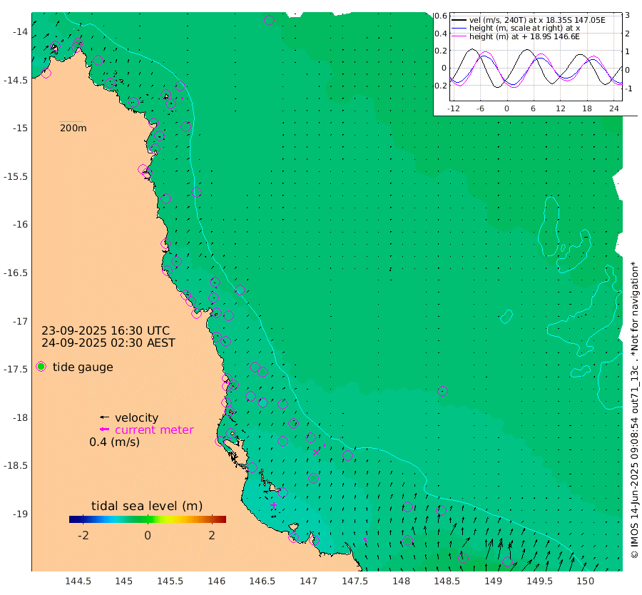 1cm/s -35T +11cm/s rms + 4cm/s -61T. GBRLSL 354m 11cm/s 10T +15cm/s rms + 2cm/s -84T. GBRLSH 32m 10cm/s 13T +15cm/s rms + 5cm/s -155T. GBRPPS 72m 5cm/s 23T +17cm/s rms + 13cm/s 115T. GBRMYR 223m 19cm/s -20T +18cm/s rms + 0cm/s -9T. NRSYON 29m -57cm Osprey Reef - West -61cm Stanley Island -36cm Pipon Islands -56cm Cape Melville -58cm Munro Reef -59cm Leggatt Island -65cm Normanby River -53cm Carter Reef -56cm Lizard Island (QLD) -63cm East Petherbridge Island -58cm North Direction Island -67cm Cape Flattery -60cm Ribbon Reef No.9 -61cm Low Wooded Island -58cm Cape Bedford -38cm Endeavour River North -60cm Cooktown -59cm Cruiser Passage -64cm East Hope Island -45cm Bailay Creek -58cm Low Islets -63cm Port Douglas -64cm Palm Cove -57cm Yorkeys Knob -61cm Michaelmas Cay -70cm Euston Reef -65cm Cairns -62cm Green Island -63cm Fitzroy Island -65cm Sudbury Cay -59cm High Island -63cm Russell Island -61cm Peart Reef -56cm Nathan Reef -63cm Mourilyan Harbour -66cm Cowley Beach -52cm North Barnard Island -71cm Eddy Reef -82cm Beaver Reef -64cm Unnamed Reef No. 1 -63cm Flinders Reef -68cm Clump Point -65cm Dunk Island -58cm Barnett Patches -70cm Goold Island -74cm Cardwell -66cm Britomart Reef -66cm Pith Reef -65cm Dip Reef -73cm Lucinda (Offshore) -60cm John Brewer Reef -78cm Albino Rock -62cm Shrimp Reef -63cm Jaguar Reef -78cm Townsville -74cm Cape Ferguson -49cm Stanley Reef -47cm Wallaby Reef -63cm Kennedy Reef