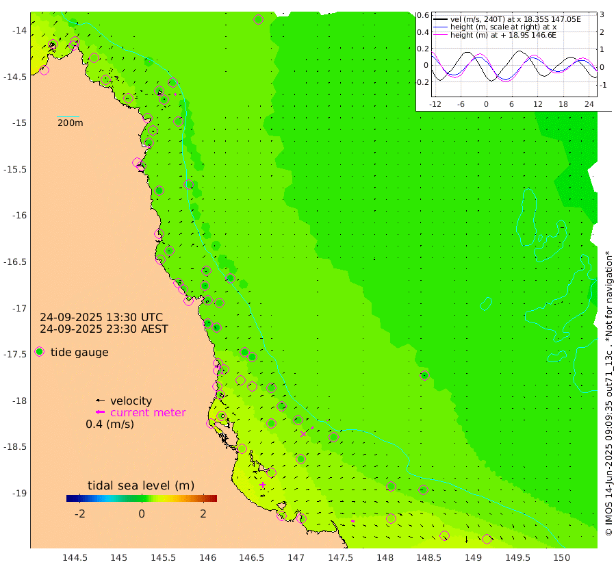 1cm/s -73T +11cm/s rms + 4cm/s -61T. GBRLSL 354m 9cm/s 18T +15cm/s rms + 2cm/s -84T. GBRLSH 32m 11cm/s 53T +15cm/s rms + 5cm/s -155T. GBRPPS 72m 3cm/s 49T +17cm/s rms + 13cm/s 115T. GBRMYR 223m 15cm/s 116T +18cm/s rms + 0cm/s -9T. NRSYON 29m 21cm Osprey Reef - West 23cm Stanley Island 32cm Pipon Islands 25cm Cape Melville 24cm Munro Reef 27cm Leggatt Island 34cm Normanby River 19cm Carter Reef 19cm Lizard Island (QLD) 26cm East Petherbridge Island 22cm North Direction Island 24cm Cape Flattery 21cm Ribbon Reef No.9 23cm Low Wooded Island 19cm Cape Bedford 13cm Endeavour River North 21cm Cooktown 18cm Cruiser Passage 13cm East Hope Island 24cm Bailay Creek 19cm Low Islets 23cm Port Douglas 20cm Palm Cove 17cm Yorkeys Knob 17cm Michaelmas Cay 10cm Euston Reef 24cm Cairns 10cm Green Island 15cm Fitzroy Island 18cm Sudbury Cay 12cm High Island 2cm Russell Island 13cm Peart Reef 14cm Nathan Reef 24cm Mourilyan Harbour 22cm Cowley Beach 24cm North Barnard Island 35cm Eddy Reef 31cm Beaver Reef 21cm Unnamed Reef No. 1 13cm Flinders Reef 25cm Clump Point 23cm Dunk Island 19cm Barnett Patches 25cm Goold Island 39cm Cardwell 17cm Britomart Reef 20cm Pith Reef 21cm Dip Reef 31cm Lucinda (Offshore) 18cm John Brewer Reef 33cm Albino Rock 21cm Shrimp Reef 19cm Jaguar Reef 32cm Townsville 29cm Cape Ferguson 33cm Stanley Reef 39cm Wallaby Reef 40cm Kennedy Reef