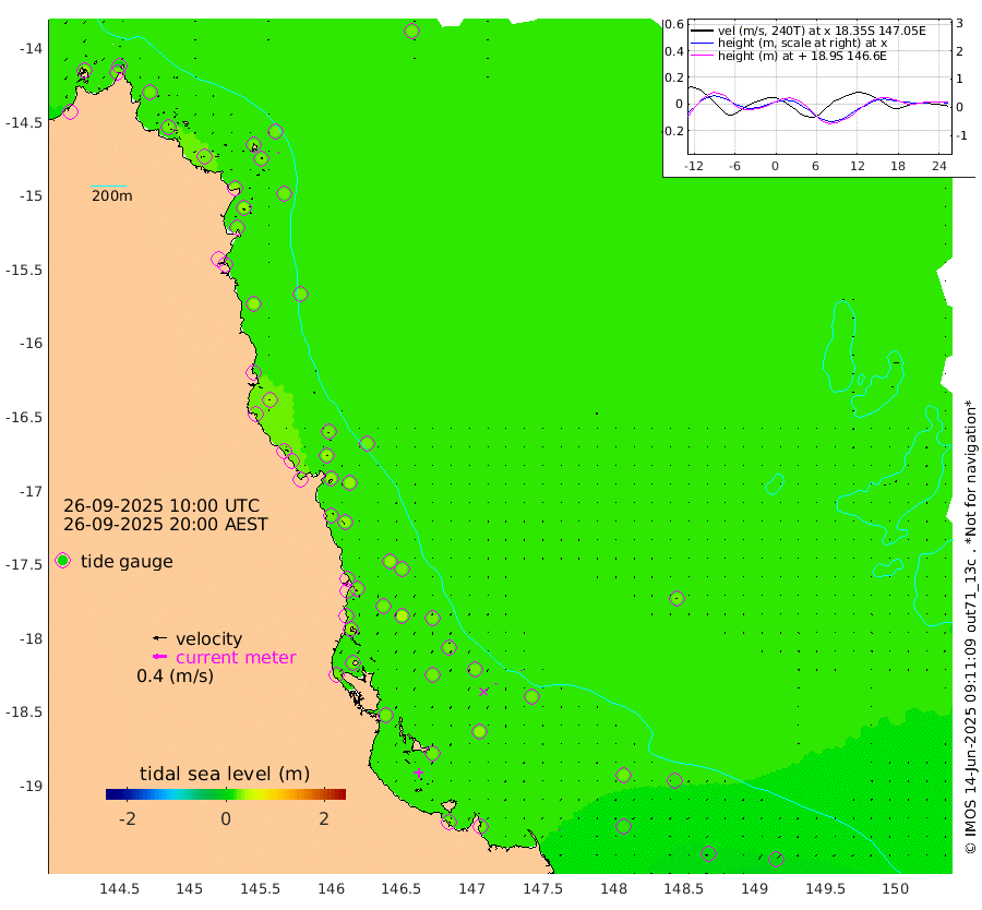 0cm/s -142T +11cm/s rms + 4cm/s -61T. GBRLSL 354m 1cm/s -139T +15cm/s rms + 2cm/s -84T. GBRLSH 32m 3cm/s 179T +15cm/s rms + 5cm/s -155T. GBRPPS 72m 1cm/s 164T +17cm/s rms + 13cm/s 115T. GBRMYR 223m 2cm/s -155T +18cm/s rms + 0cm/s -9T. NRSYON 29m 23cm Osprey Reef - West 32cm Stanley Island 6cm Pipon Islands 25cm Cape Melville 29cm Munro Reef 30cm Leggatt Island 34cm Normanby River 29cm Carter Reef 26cm Lizard Island (QLD) 29cm East Petherbridge Island 25cm North Direction Island 32cm Cape Flattery 28cm Ribbon Reef No.9 30cm Low Wooded Island 26cm Cape Bedford 15cm Endeavour River North 29cm Cooktown 27cm Cruiser Passage 32cm East Hope Island 19cm Bailay Creek 31cm Low Islets 28cm Port Douglas 29cm Palm Cove 30cm Yorkeys Knob 28cm Michaelmas Cay 23cm Euston Reef 29cm Cairns 30cm Green Island 33cm Fitzroy Island 31cm Sudbury Cay 29cm High Island 35cm Russell Island 35cm Peart Reef 30cm Nathan Reef 27cm Mourilyan Harbour 27cm Cowley Beach 28cm North Barnard Island 25cm Eddy Reef 40cm Beaver Reef 26cm Unnamed Reef No. 1 29cm Flinders Reef 28cm Clump Point 31cm Dunk Island 26cm Barnett Patches 30cm Goold Island 30cm Cardwell 30cm Britomart Reef 25cm Pith Reef 29cm Dip Reef 30cm Lucinda (Offshore) 37cm John Brewer Reef 28cm Albino Rock 24cm Shrimp Reef 17cm Jaguar Reef 30cm Townsville 27cm Cape Ferguson 16cm Stanley Reef 7cm Wallaby Reef 6cm Kennedy Reef