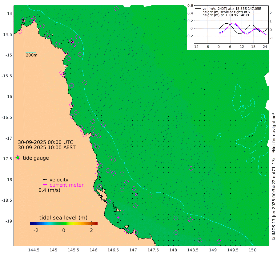 1cm/s -134T +11cm/s rms + 4cm/s -61T. GBRLSL 354m 2cm/s -14T +15cm/s rms + 2cm/s -84T. GBRLSH 32m 4cm/s 2T +15cm/s rms + 5cm/s -155T. GBRPPS 72m 2cm/s 13T +17cm/s rms + 13cm/s 115T. GBRMYR 223m 4cm/s -17T +18cm/s rms + 0cm/s -9T. NRSYON 29m -27cm Osprey Reef - West -32cm Stanley Island -26cm Pipon Islands -31cm Cape Melville -29cm Munro Reef -29cm Leggatt Island -26cm Normanby River -30cm Carter Reef -33cm Lizard Island (QLD) -36cm East Petherbridge Island -36cm North Direction Island -30cm Cape Flattery -25cm Ribbon Reef No.9 -35cm Low Wooded Island -36cm Cape Bedford -16cm Endeavour River North -32cm Cooktown -26cm Cruiser Passage -38cm East Hope Island -36cm Bailay Creek -32cm Low Islets -33cm Port Douglas -32cm Palm Cove -28cm Yorkeys Knob -29cm Michaelmas Cay -37cm Euston Reef -33cm Cairns -29cm Green Island -24cm Fitzroy Island -29cm Sudbury Cay -34cm High Island -29cm Russell Island -28cm Peart Reef -27cm Nathan Reef -33cm Mourilyan Harbour -35cm Cowley Beach -30cm North Barnard Island -33cm Eddy Reef -41cm Beaver Reef -31cm Unnamed Reef No. 1 -24cm Flinders Reef -34cm Clump Point -33cm Dunk Island -34cm Barnett Patches -37cm Goold Island -37cm Cardwell -36cm Britomart Reef -34cm Pith Reef -27cm Dip Reef -37cm Lucinda (Offshore) -31cm John Brewer Reef -36cm Albino Rock -39cm Shrimp Reef -35cm Jaguar Reef -39cm Townsville -39cm Cape Ferguson -41cm Stanley Reef -34cm Wallaby Reef -43cm Kennedy Reef