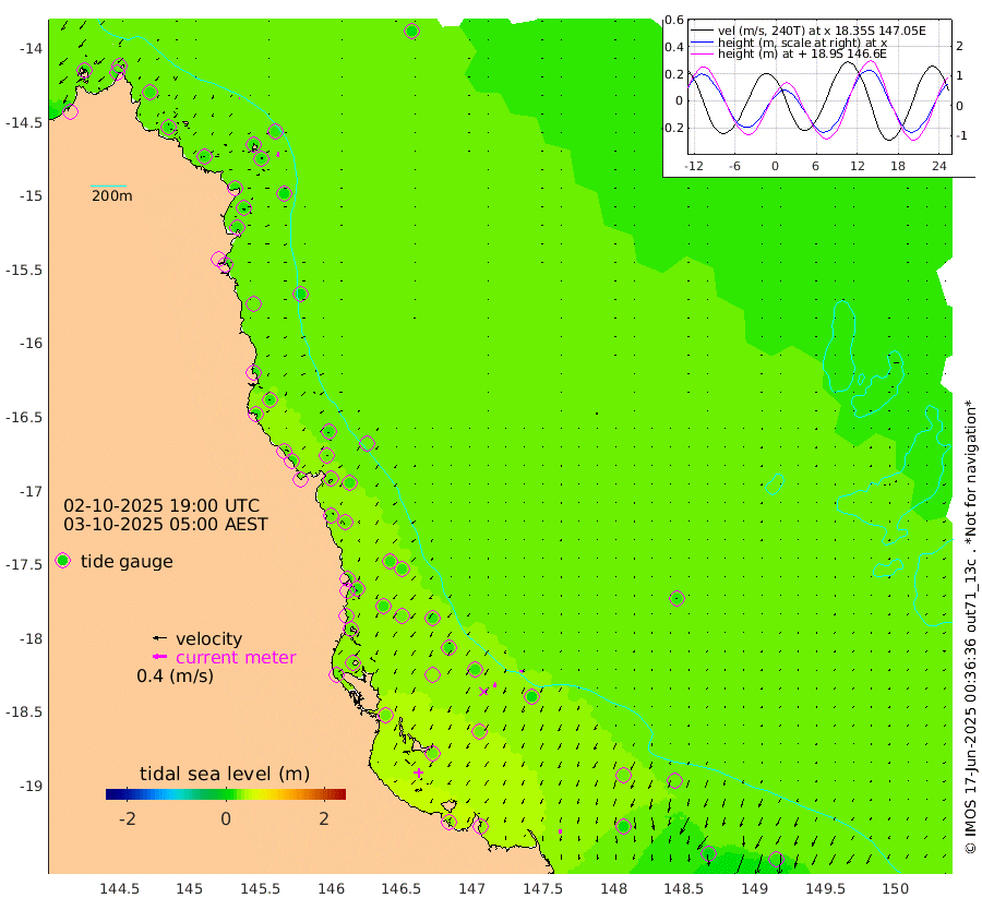 2cm/s 113T +11cm/s rms + 4cm/s -61T. GBRLSL 354m 13cm/s -165T +15cm/s rms + 2cm/s -84T. GBRLSH 32m 12cm/s -149T +15cm/s rms + 5cm/s -155T. GBRPPS 72m 6cm/s -157T +17cm/s rms + 13cm/s 115T. GBRMYR 223m 12cm/s -176T +18cm/s rms + 0cm/s -9T. NRSYON 29m 12cm Osprey Reef - West 19cm Stanley Island 27cm Pipon Islands 16cm Cape Melville 16cm Munro Reef 16cm Leggatt Island 19cm Normanby River 15cm Carter Reef 18cm Lizard Island (QLD) 17cm East Petherbridge Island 17cm North Direction Island 20cm Cape Flattery 13cm Ribbon Reef No.9 17cm Low Wooded Island 18cm Cape Bedford 3cm Endeavour River North 19cm Cooktown 14cm Cruiser Passage 28cm East Hope Island 15cm Bailay Creek 20cm Low Islets 22cm Port Douglas 23cm Palm Cove 20cm Yorkeys Knob 17cm Michaelmas Cay 28cm Euston Reef 23cm Cairns 24cm Green Island 27cm Fitzroy Island 20cm Sudbury Cay 26cm High Island 29cm Russell Island 22cm Peart Reef 20cm Nathan Reef 21cm Mourilyan Harbour 26cm Cowley Beach 19cm North Barnard Island 17cm Eddy Reef 27cm Beaver Reef 20cm Unnamed Reef No. 1 15cm Flinders Reef 25cm Clump Point 25cm Dunk Island 19cm Barnett Patches 28cm Goold Island 27cm Cardwell 30cm Britomart Reef 21cm Pith Reef 13cm Dip Reef 28cm Lucinda (Offshore) 25cm John Brewer Reef 29cm Albino Rock 24cm Shrimp Reef 24cm Jaguar Reef 33cm Townsville 31cm Cape Ferguson 13cm Stanley Reef 5cm Wallaby Reef 18cm Kennedy Reef