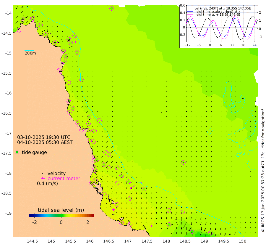 2cm/s 117T +11cm/s rms + 4cm/s -61T. GBRLSL 354m 16cm/s -167T +15cm/s rms + 2cm/s -84T. GBRLSH 32m 14cm/s -151T +15cm/s rms + 5cm/s -155T. GBRPPS 72m 7cm/s -157T +17cm/s rms + 13cm/s 115T. GBRMYR 223m 16cm/s 179T +18cm/s rms + 0cm/s -9T. NRSYON 29m 28cm Osprey Reef - West 37cm Stanley Island 40cm Pipon Islands 31cm Cape Melville 34cm Munro Reef 34cm Leggatt Island 38cm Normanby River 34cm Carter Reef 34cm Lizard Island (QLD) 34cm East Petherbridge Island 32cm North Direction Island 38cm Cape Flattery 31cm Ribbon Reef No.9 36cm Low Wooded Island 33cm Cape Bedford 10cm Endeavour River North 37cm Cooktown 32cm Cruiser Passage 46cm East Hope Island 30cm Bailay Creek 36cm Low Islets 40cm Port Douglas 42cm Palm Cove 39cm Yorkeys Knob 34cm Michaelmas Cay 45cm Euston Reef 41cm Cairns 43cm Green Island 47cm Fitzroy Island 38cm Sudbury Cay 44cm High Island 47cm Russell Island 41cm Peart Reef 38cm Nathan Reef 39cm Mourilyan Harbour 44cm Cowley Beach 34cm North Barnard Island 35cm Eddy Reef 50cm Beaver Reef 38cm Unnamed Reef No. 1 33cm Flinders Reef 44cm Clump Point 46cm Dunk Island 36cm Barnett Patches 49cm Goold Island 47cm Cardwell 52cm Britomart Reef 37cm Pith Reef 31cm Dip Reef 49cm Lucinda (Offshore) 44cm John Brewer Reef 50cm Albino Rock 40cm Shrimp Reef 41cm Jaguar Reef 55cm Townsville 52cm Cape Ferguson 28cm Stanley Reef 18cm Wallaby Reef 30cm Kennedy Reef