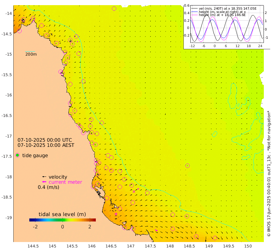 1cm/s 109T +11cm/s rms + 4cm/s -61T. GBRLSL 354m 11cm/s 33T +15cm/s rms + 2cm/s -84T. GBRLSH 32m 16cm/s 65T +15cm/s rms + 5cm/s -155T. GBRPPS 72m 5cm/s 65T +17cm/s rms + 13cm/s 115T. GBRMYR 223m 26cm/s 120T +18cm/s rms + 0cm/s -9T. NRSYON 29m 65cm Osprey Reef - West 87cm Stanley Island 73cm Pipon Islands 76cm Cape Melville 87cm Munro Reef 86cm Leggatt Island 100cm Normanby River 79cm Carter Reef 73cm Lizard Island (QLD) 81cm East Petherbridge Island 72cm North Direction Island 83cm Cape Flattery 73cm Ribbon Reef No.9 74cm Low Wooded Island 70cm Cape Bedford 43cm Endeavour River North 76cm Cooktown 68cm Cruiser Passage 71cm East Hope Island 76cm Bailay Creek 70cm Low Islets 79cm Port Douglas 75cm Palm Cove 71cm Yorkeys Knob 76cm Michaelmas Cay 61cm Euston Reef 83cm Cairns 67cm Green Island 73cm Fitzroy Island 75cm Sudbury Cay 69cm High Island 57cm Russell Island 71cm Peart Reef 67cm Nathan Reef 83cm Mourilyan Harbour 82cm Cowley Beach 94cm North Barnard Island 87cm Eddy Reef 108cm Beaver Reef 74cm Unnamed Reef No. 1 60cm Flinders Reef 87cm Clump Point 92cm Dunk Island 72cm Barnett Patches 93cm Goold Island 116cm Cardwell 77cm Britomart Reef 72cm Pith Reef 69cm Dip Reef 101cm Lucinda (Offshore) 88cm John Brewer Reef 100cm Albino Rock 80cm Shrimp Reef 73cm Jaguar Reef 106cm Townsville 98cm Cape Ferguson 98cm Stanley Reef 104cm Wallaby Reef 96cm Kennedy Reef
