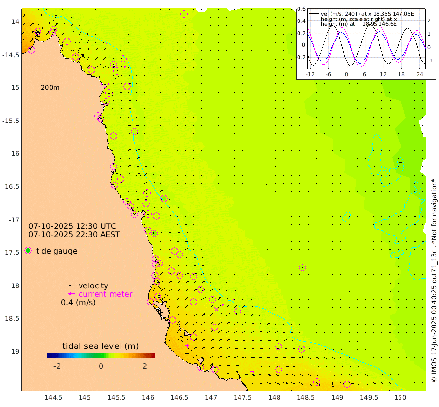 1cm/s -71T +11cm/s rms + 4cm/s -61T. GBRLSL 354m 13cm/s 23T +15cm/s rms + 2cm/s -84T. GBRLSH 32m 19cm/s 57T +15cm/s rms + 5cm/s -155T. GBRPPS 72m 6cm/s 57T +17cm/s rms + 13cm/s 115T. GBRMYR 223m 24cm/s 113T +18cm/s rms + 0cm/s -9T. NRSYON 29m 48cm Osprey Reef - West 69cm Stanley Island 64cm Pipon Islands 60cm Cape Melville 67cm Munro Reef 69cm Leggatt Island 88cm Normanby River 56cm Carter Reef 57cm Lizard Island (QLD) 64cm East Petherbridge Island 55cm North Direction Island 63cm Cape Flattery 53cm Ribbon Reef No.9 56cm Low Wooded Island 50cm Cape Bedford 40cm Endeavour River North 58cm Cooktown 48cm Cruiser Passage 51cm East Hope Island 62cm Bailay Creek 57cm Low Islets 60cm Port Douglas 56cm Palm Cove 55cm Yorkeys Knob 54cm Michaelmas Cay 31cm Euston Reef 63cm Cairns 45cm Green Island 56cm Fitzroy Island 55cm Sudbury Cay 50cm High Island 37cm Russell Island 55cm Peart Reef 52cm Nathan Reef 63cm Mourilyan Harbour 62cm Cowley Beach 81cm North Barnard Island 67cm Eddy Reef 87cm Beaver Reef 54cm Unnamed Reef No. 1 38cm Flinders Reef 67cm Clump Point 70cm Dunk Island 58cm Barnett Patches 71cm Goold Island 93cm Cardwell 55cm Britomart Reef 53cm Pith Reef 50cm Dip Reef 78cm Lucinda (Offshore) 70cm John Brewer Reef 77cm Albino Rock 60cm Shrimp Reef 48cm Jaguar Reef 82cm Townsville 74cm Cape Ferguson 79cm Stanley Reef 83cm Wallaby Reef 71cm Kennedy Reef
