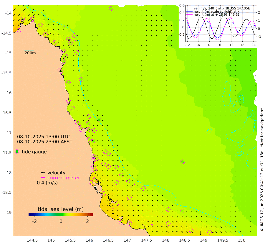 1cm/s -72T +11cm/s rms + 4cm/s -61T. GBRLSL 354m 12cm/s 22T +15cm/s rms + 2cm/s -84T. GBRLSH 32m 16cm/s 57T +15cm/s rms + 5cm/s -155T. GBRPPS 72m 5cm/s 60T +17cm/s rms + 13cm/s 115T. GBRMYR 223m 23cm/s 117T +18cm/s rms + 0cm/s -9T. NRSYON 29m 37cm Osprey Reef - West 52cm Stanley Island 57cm Pipon Islands 46cm Cape Melville 52cm Munro Reef 55cm Leggatt Island 72cm Normanby River 42cm Carter Reef 43cm Lizard Island (QLD) 47cm East Petherbridge Island 39cm North Direction Island 48cm Cape Flattery 40cm Ribbon Reef No.9 44cm Low Wooded Island 36cm Cape Bedford 32cm Endeavour River North 45cm Cooktown 36cm Cruiser Passage 37cm East Hope Island 48cm Bailay Creek 43cm Low Islets 47cm Port Douglas 43cm Palm Cove 43cm Yorkeys Knob 40cm Michaelmas Cay 17cm Euston Reef 49cm Cairns 33cm Green Island 44cm Fitzroy Island 42cm Sudbury Cay 38cm High Island 25cm Russell Island 42cm Peart Reef 40cm Nathan Reef 49cm Mourilyan Harbour 47cm Cowley Beach 66cm North Barnard Island 53cm Eddy Reef 68cm Beaver Reef 41cm Unnamed Reef No. 1 27cm Flinders Reef 52cm Clump Point 56cm Dunk Island 44cm Barnett Patches 56cm Goold Island 76cm Cardwell 42cm Britomart Reef 39cm Pith Reef 38cm Dip Reef 63cm Lucinda (Offshore) 56cm John Brewer Reef 61cm Albino Rock 45cm Shrimp Reef 36cm Jaguar Reef 66cm Townsville 59cm Cape Ferguson 64cm Stanley Reef 66cm Wallaby Reef 57cm Kennedy Reef
