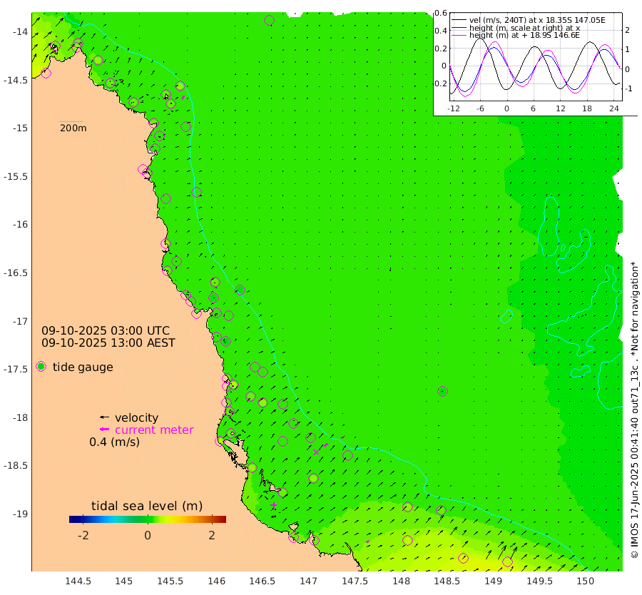 1cm/s -23T +11cm/s rms + 4cm/s -61T. GBRLSL 354m 17cm/s 24T +15cm/s rms + 2cm/s -84T. GBRLSH 32m 18cm/s 46T +15cm/s rms + 5cm/s -155T. GBRPPS 72m 7cm/s 42T +17cm/s rms + 13cm/s 115T. GBRMYR 223m 13cm/s 65T +18cm/s rms + 0cm/s -9T. NRSYON 29m 19cm Osprey Reef - West 29cm Stanley Island 23cm Pipon Islands 30cm Cape Melville 32cm Munro Reef 30cm Leggatt Island 26cm Normanby River 32cm Carter Reef 28cm Lizard Island (QLD) 24cm East Petherbridge Island 23cm North Direction Island 26cm Cape Flattery 22cm Ribbon Reef No.9 21cm Low Wooded Island 22cm Cape Bedford 12cm Endeavour River North 24cm Cooktown 19cm Cruiser Passage 22cm East Hope Island 30cm Bailay Creek 21cm Low Islets 23cm Port Douglas 20cm Palm Cove 19cm Yorkeys Knob 26cm Michaelmas Cay 11cm Euston Reef 25cm Cairns 14cm Green Island 21cm Fitzroy Island 22cm Sudbury Cay 21cm High Island 6cm Russell Island 17cm Peart Reef 17cm Nathan Reef 27cm Mourilyan Harbour 22cm Cowley Beach 43cm North Barnard Island 25cm Eddy Reef 33cm Beaver Reef 21cm Unnamed Reef No. 1 15cm Flinders Reef 26cm Clump Point 30cm Dunk Island 22cm Barnett Patches 28cm Goold Island 40cm Cardwell 18cm Britomart Reef 22cm Pith Reef 18cm Dip Reef 30cm Lucinda (Offshore) 32cm John Brewer Reef 26cm Albino Rock 32cm Shrimp Reef 24cm Jaguar Reef 30cm Townsville 28cm Cape Ferguson 52cm Stanley Reef 62cm Wallaby Reef 50cm Kennedy Reef