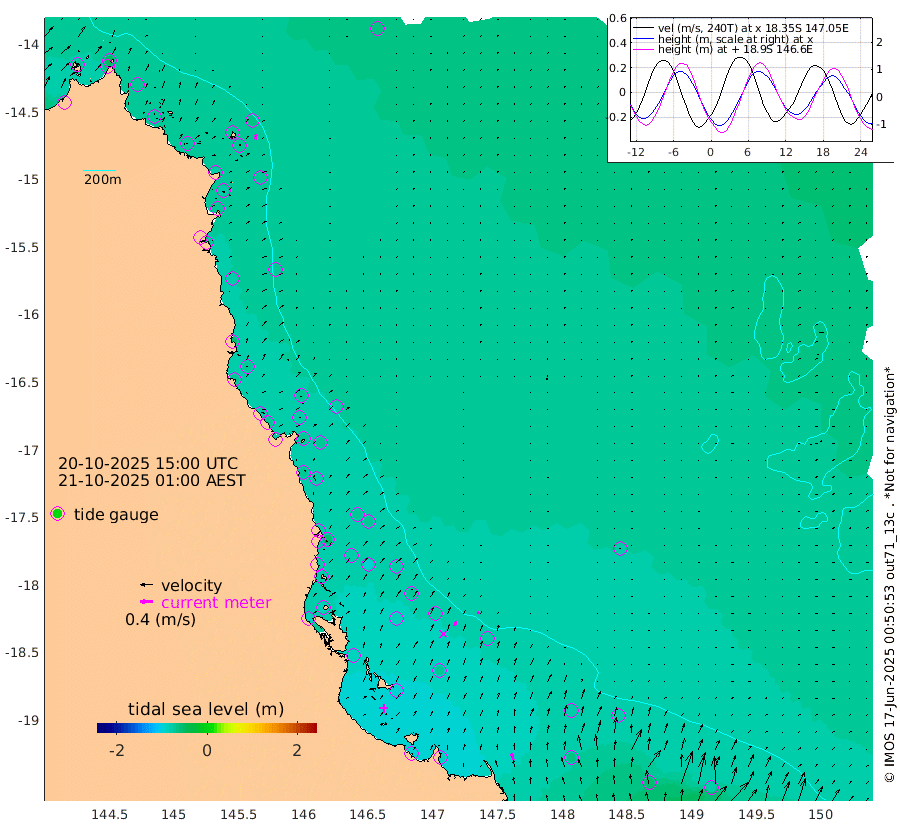 1cm/s -25T +11cm/s rms + 4cm/s -61T. GBRLSL 354m 15cm/s 11T +15cm/s rms + 2cm/s -84T. GBRLSH 32m 15cm/s 19T +15cm/s rms + 5cm/s -155T. GBRPPS 72m 7cm/s 23T +17cm/s rms + 13cm/s 115T. GBRMYR 223m 21cm/s -13T +18cm/s rms + 0cm/s -9T. NRSYON 29m -67cm Osprey Reef - West -70cm Stanley Island -46cm Pipon Islands -66cm Cape Melville -68cm Munro Reef -68cm Leggatt Island -73cm Normanby River -64cm Carter Reef -68cm Lizard Island (QLD) -75cm East Petherbridge Island -71cm North Direction Island -77cm Cape Flattery -72cm Ribbon Reef No.9 -77cm Low Wooded Island -70cm Cape Bedford -42cm Endeavour River North -72cm Cooktown -72cm Cruiser Passage -77cm East Hope Island -56cm Bailay Creek -69cm Low Islets -75cm Port Douglas -78cm Palm Cove -71cm Yorkeys Knob -70cm Michaelmas Cay -82cm Euston Reef -77cm Cairns -76cm Green Island -73cm Fitzroy Island -75cm Sudbury Cay -72cm High Island -76cm Russell Island -74cm Peart Reef -69cm Nathan Reef -75cm Mourilyan Harbour -80cm Cowley Beach -59cm North Barnard Island -81cm Eddy Reef -95cm Beaver Reef -77cm Unnamed Reef No. 1 -76cm Flinders Reef -81cm Clump Point -78cm Dunk Island -72cm Barnett Patches -85cm Goold Island -85cm Cardwell -83cm Britomart Reef -78cm Pith Reef -79cm Dip Reef -86cm Lucinda (Offshore) -72cm John Brewer Reef -92cm Albino Rock -75cm Shrimp Reef -76cm Jaguar Reef -93cm Townsville -89cm Cape Ferguson -63cm Stanley Reef -58cm Wallaby Reef -76cm Kennedy Reef
