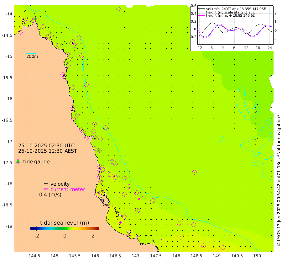 1cm/s -54T +11cm/s rms + 4cm/s -61T. GBRLSL 354m 3cm/s 47T +15cm/s rms + 2cm/s -84T. GBRLSH 32m 5cm/s 73T +15cm/s rms + 5cm/s -155T. GBRPPS 72m 0cm/s 43T +17cm/s rms + 13cm/s 115T. GBRMYR 223m 12cm/s 125T +18cm/s rms + 0cm/s -9T. NRSYON 29m 43cm Osprey Reef - West 40cm Stanley Island 30cm Pipon Islands 41cm Cape Melville 42cm Munro Reef 42cm Leggatt Island 39cm Normanby River 41cm Carter Reef 42cm Lizard Island (QLD) 43cm East Petherbridge Island 42cm North Direction Island 42cm Cape Flattery 42cm Ribbon Reef No.9 48cm Low Wooded Island 41cm Cape Bedford 33cm Endeavour River North 41cm Cooktown 42cm Cruiser Passage 41cm East Hope Island 46cm Bailay Creek 36cm Low Islets 42cm Port Douglas 41cm Palm Cove 37cm Yorkeys Knob 42cm Michaelmas Cay 43cm Euston Reef 43cm Cairns 38cm Green Island 32cm Fitzroy Island 41cm Sudbury Cay 40cm High Island 29cm Russell Island 33cm Peart Reef 33cm Nathan Reef 45cm Mourilyan Harbour 44cm Cowley Beach 44cm North Barnard Island 52cm Eddy Reef 56cm Beaver Reef 45cm Unnamed Reef No. 1 38cm Flinders Reef 46cm Clump Point 45cm Dunk Island 44cm Barnett Patches 48cm Goold Island 53cm Cardwell 40cm Britomart Reef 48cm Pith Reef 46cm Dip Reef 49cm Lucinda (Offshore) 36cm John Brewer Reef 52cm Albino Rock 51cm Shrimp Reef 50cm Jaguar Reef 50cm Townsville 50cm Cape Ferguson 60cm Stanley Reef 66cm Wallaby Reef 67cm Kennedy Reef