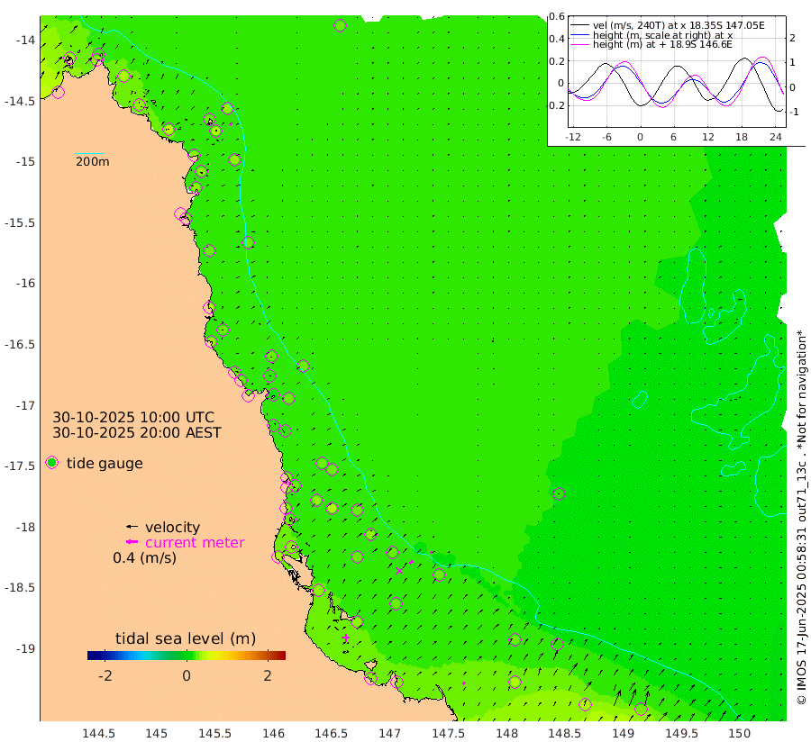 0cm/s 50T +11cm/s rms + 4cm/s -61T. GBRLSL 354m 10cm/s 26T +15cm/s rms + 2cm/s -84T. GBRLSH 32m 14cm/s 49T +15cm/s rms + 5cm/s -155T. GBRPPS 72m 6cm/s 40T +17cm/s rms + 13cm/s 115T. GBRMYR 223m 10cm/s 41T +18cm/s rms + 0cm/s -9T. NRSYON 29m 27cm Osprey Reef - West 41cm Stanley Island 19cm Pipon Islands 33cm Cape Melville 39cm Munro Reef 37cm Leggatt Island 43cm Normanby River 37cm Carter Reef 29cm Lizard Island (QLD) 46cm East Petherbridge Island 39cm North Direction Island 32cm Cape Flattery 31cm Ribbon Reef No.9 34cm Low Wooded Island 37cm Cape Bedford 15cm Endeavour River North 30cm Cooktown 27cm Cruiser Passage 24cm East Hope Island 42cm Bailay Creek 29cm Low Islets 30cm Port Douglas 27cm Palm Cove 26cm Yorkeys Knob 30cm Michaelmas Cay 25cm Euston Reef 31cm Cairns 22cm Green Island 12cm Fitzroy Island 26cm Sudbury Cay 19cm High Island 18cm Russell Island 26cm Peart Reef 24cm Nathan Reef 31cm Mourilyan Harbour 30cm Cowley Beach 28cm North Barnard Island 34cm Eddy Reef 42cm Beaver Reef 27cm Unnamed Reef No. 1 18cm Flinders Reef 31cm Clump Point 29cm Dunk Island 31cm Barnett Patches 30cm Goold Island 42cm Cardwell 24cm Britomart Reef 26cm Pith Reef 24cm Dip Reef 35cm Lucinda (Offshore) 28cm John Brewer Reef 33cm Albino Rock 27cm Shrimp Reef 20cm Jaguar Reef 34cm Townsville 32cm Cape Ferguson 43cm Stanley Reef 44cm Wallaby Reef 29cm Kennedy Reef