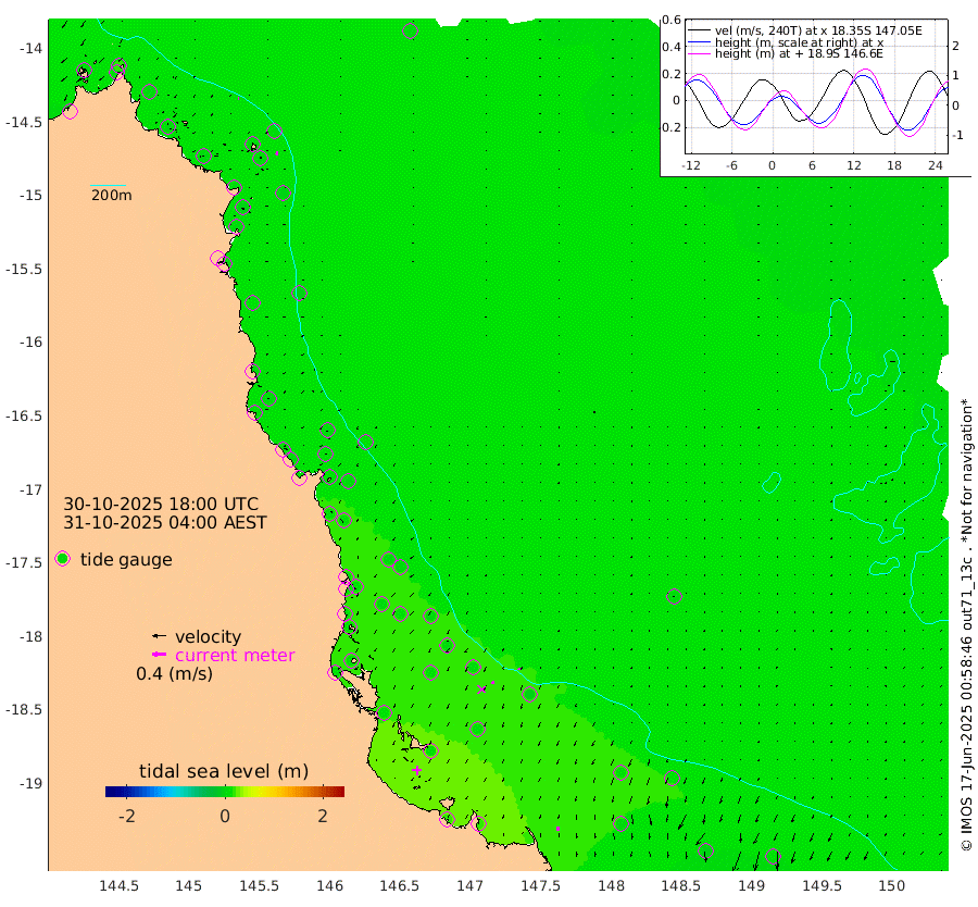 2cm/s 105T +11cm/s rms + 4cm/s -61T. GBRLSL 354m 9cm/s -162T +15cm/s rms + 2cm/s -84T. GBRLSH 32m 9cm/s -147T +15cm/s rms + 5cm/s -155T. GBRPPS 72m 4cm/s -158T +17cm/s rms + 13cm/s 115T. GBRMYR 223m 10cm/s -179T +18cm/s rms + 0cm/s -9T. NRSYON 29m 0cm Osprey Reef - West 5cm Stanley Island 20cm Pipon Islands 4cm Cape Melville 2cm Munro Reef 3cm Leggatt Island 4cm Normanby River 2cm Carter Reef 5cm Lizard Island (QLD) 2cm East Petherbridge Island 3cm North Direction Island 5cm Cape Flattery -2cm Ribbon Reef No.9 -1cm Low Wooded Island 5cm Cape Bedford -4cm Endeavour River North 6cm Cooktown -1cm Cruiser Passage 13cm East Hope Island 2cm Bailay Creek 6cm Low Islets 8cm Port Douglas 8cm Palm Cove 5cm Yorkeys Knob 5cm Michaelmas Cay 15cm Euston Reef 8cm Cairns 8cm Green Island 14cm Fitzroy Island 6cm Sudbury Cay 12cm High Island 13cm Russell Island 7cm Peart Reef 6cm Nathan Reef 7cm Mourilyan Harbour 12cm Cowley Beach 9cm North Barnard Island 4cm Eddy Reef 8cm Beaver Reef 5cm Unnamed Reef No. 1 2cm Flinders Reef 10cm Clump Point 11cm Dunk Island 4cm Barnett Patches 13cm Goold Island 12cm Cardwell 14cm Britomart Reef 7cm Pith Reef -2cm Dip Reef 13cm Lucinda (Offshore) 11cm John Brewer Reef 13cm Albino Rock 10cm Shrimp Reef 13cm Jaguar Reef 17cm Townsville 16cm Cape Ferguson 3cm Stanley Reef -2cm Wallaby Reef 11cm Kennedy Reef