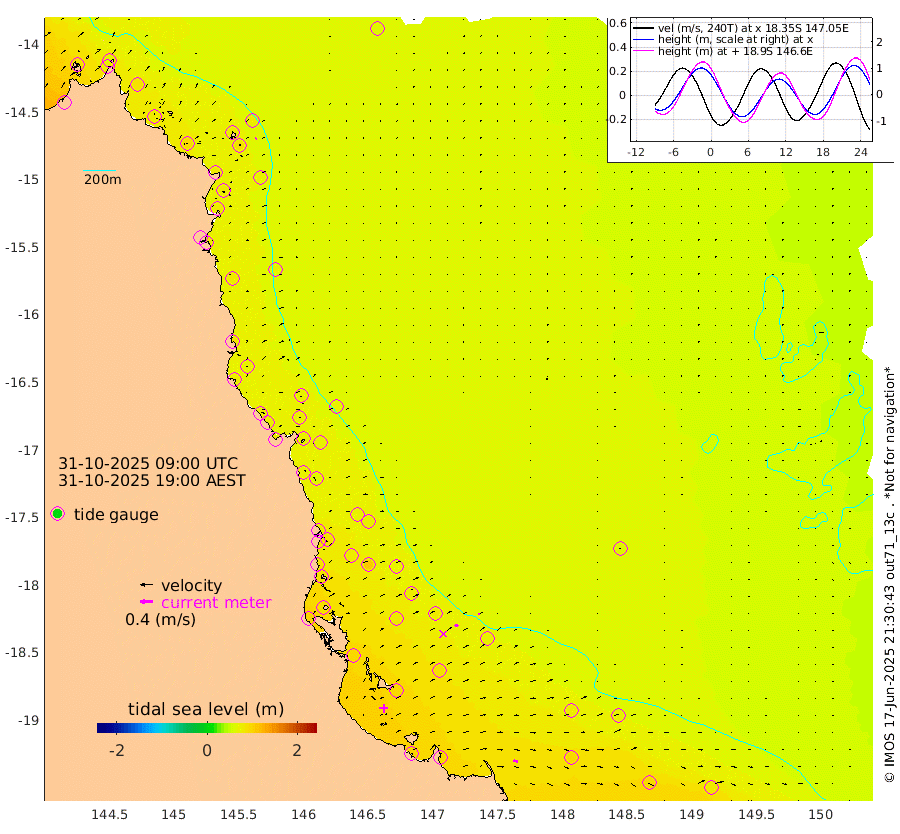 0cm/s -19T +11cm/s rms + 4cm/s -61T. GBRLSL 354m 5cm/s 45T +15cm/s rms + 2cm/s -84T. GBRLSH 32m 11cm/s 71T +15cm/s rms + 5cm/s -155T. GBRPPS 72m 4cm/s 66T +17cm/s rms + 13cm/s 115T. GBRMYR 223m 14cm/s 109T +18cm/s rms + 0cm/s -9T. NRSYON 29m 64cm Osprey Reef - West 89cm Stanley Island 61cm Pipon Islands 80cm Cape Melville 86cm Munro Reef 82cm Leggatt Island 96cm Normanby River 81cm Carter Reef 76cm Lizard Island (QLD) 92cm East Petherbridge Island 83cm North Direction Island 82cm Cape Flattery 72cm Ribbon Reef No.9 78cm Low Wooded Island 78cm Cape Bedford 39cm Endeavour River North 77cm Cooktown 68cm Cruiser Passage 78cm East Hope Island 83cm Bailay Creek 75cm Low Islets 79cm Port Douglas 75cm Palm Cove 72cm Yorkeys Knob 74cm Michaelmas Cay 70cm Euston Reef 81cm Cairns 68cm Green Island 68cm Fitzroy Island 74cm Sudbury Cay 68cm High Island 64cm Russell Island 74cm Peart Reef 69cm Nathan Reef 80cm Mourilyan Harbour 83cm Cowley Beach 83cm North Barnard Island 82cm Eddy Reef 107cm Beaver Reef 74cm Unnamed Reef No. 1 61cm Flinders Reef 84cm Clump Point 83cm Dunk Island 80cm Barnett Patches 87cm Goold Island 104cm Cardwell 78cm Britomart Reef 76cm Pith Reef 68cm Dip Reef 94cm Lucinda (Offshore) 85cm John Brewer Reef 93cm Albino Rock 82cm Shrimp Reef 69cm Jaguar Reef 98cm Townsville 92cm Cape Ferguson 93cm Stanley Reef 94cm Wallaby Reef 82cm Kennedy Reef