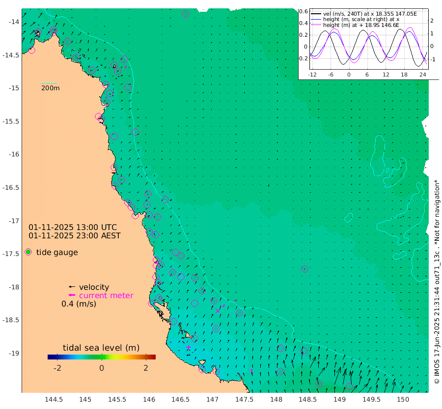 0cm/s -6T +11cm/s rms + 4cm/s -61T. GBRLSL 354m 16cm/s 14T +15cm/s rms + 2cm/s -84T. GBRLSH 32m 16cm/s 22T +15cm/s rms + 5cm/s -155T. GBRPPS 72m 8cm/s 20T +17cm/s rms + 13cm/s 115T. GBRMYR 223m 22cm/s -11T +18cm/s rms + 0cm/s -9T. NRSYON 29m -54cm Osprey Reef - West -61cm Stanley Island -49cm Pipon Islands -56cm Cape Melville -58cm Munro Reef -58cm Leggatt Island -66cm Normanby River -56cm Carter Reef -62cm Lizard Island (QLD) -58cm East Petherbridge Island -57cm North Direction Island -66cm Cape Flattery -60cm Ribbon Reef No.9 -69cm Low Wooded Island -57cm Cape Bedford -37cm Endeavour River North -64cm Cooktown -62cm Cruiser Passage -71cm East Hope Island -50cm Bailay Creek -60cm Low Islets -66cm Port Douglas -70cm Palm Cove -67cm Yorkeys Knob -62cm Michaelmas Cay -64cm Euston Reef -68cm Cairns -70cm Green Island -72cm Fitzroy Island -66cm Sudbury Cay -72cm High Island -72cm Russell Island -71cm Peart Reef -65cm Nathan Reef -67cm Mourilyan Harbour -72cm Cowley Beach -65cm North Barnard Island -63cm Eddy Reef -86cm Beaver Reef -67cm Unnamed Reef No. 1 -65cm Flinders Reef -73cm Clump Point -77cm Dunk Island -66cm Barnett Patches -80cm Goold Island -77cm Cardwell -80cm Britomart Reef -67cm Pith Reef -66cm Dip Reef -79cm Lucinda (Offshore) -75cm John Brewer Reef -80cm Albino Rock -70cm Shrimp Reef -68cm Jaguar Reef -86cm Townsville -82cm Cape Ferguson -61cm Stanley Reef -51cm Wallaby Reef -62cm Kennedy Reef