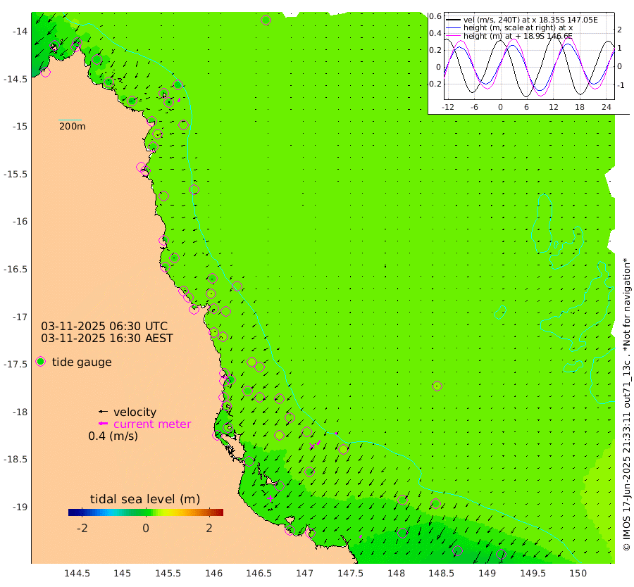 1cm/s -85T +11cm/s rms + 4cm/s -61T. GBRLSL 354m 17cm/s -158T +15cm/s rms + 2cm/s -84T. GBRLSH 32m 22cm/s -143T +15cm/s rms + 5cm/s -155T. GBRPPS 72m 9cm/s -146T +17cm/s rms + 13cm/s 115T. GBRMYR 223m 15cm/s -147T +18cm/s rms + 0cm/s -9T. NRSYON 29m 20cm Osprey Reef - West 11cm Stanley Island 7cm Pipon Islands 13cm Cape Melville 11cm Munro Reef 12cm Leggatt Island 11cm Normanby River 14cm Carter Reef 20cm Lizard Island (QLD) 12cm East Petherbridge Island 15cm North Direction Island 19cm Cape Flattery 23cm Ribbon Reef No.9 35cm Low Wooded Island 16cm Cape Bedford 12cm Endeavour River North 21cm Cooktown 27cm Cruiser Passage 28cm East Hope Island 9cm Bailay Creek 22cm Low Islets 21cm Port Douglas 28cm Palm Cove 29cm Yorkeys Knob 18cm Michaelmas Cay 24cm Euston Reef 22cm Cairns 31cm Green Island 30cm Fitzroy Island 25cm Sudbury Cay 32cm High Island 36cm Russell Island 30cm Peart Reef 28cm Nathan Reef 19cm Mourilyan Harbour 22cm Cowley Beach 8cm North Barnard Island 17cm Eddy Reef 26cm Beaver Reef 25cm Unnamed Reef No. 1 32cm Flinders Reef 22cm Clump Point 24cm Dunk Island 25cm Barnett Patches 25cm Goold Island 9cm Cardwell 36cm Britomart Reef 25cm Pith Reef 32cm Dip Reef 19cm Lucinda (Offshore) 22cm John Brewer Reef 21cm Albino Rock 21cm Shrimp Reef 21cm Jaguar Reef 22cm Townsville 23cm Cape Ferguson 2cm Stanley Reef -13cm Wallaby Reef 0cm Kennedy Reef