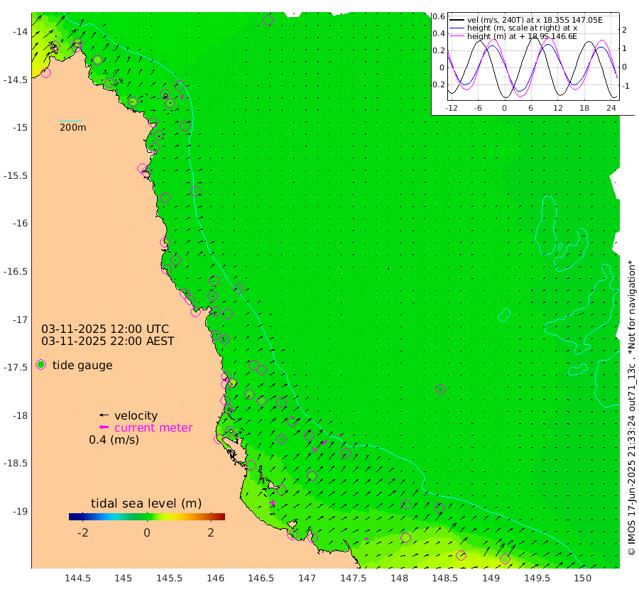 0cm/s -42T +11cm/s rms + 4cm/s -61T. GBRLSL 354m 21cm/s 19T +15cm/s rms + 2cm/s -84T. GBRLSH 32m 23cm/s 44T +15cm/s rms + 5cm/s -155T. GBRPPS 72m 9cm/s 43T +17cm/s rms + 13cm/s 115T. GBRMYR 223m 16cm/s 67T +18cm/s rms + 0cm/s -9T. NRSYON 29m 6cm Osprey Reef - West 25cm Stanley Island 23cm Pipon Islands 19cm Cape Melville 23cm Munro Reef 22cm Leggatt Island 36cm Normanby River 13cm Carter Reef 12cm Lizard Island (QLD) 23cm East Petherbridge Island 16cm North Direction Island 15cm Cape Flattery 7cm Ribbon Reef No.9 3cm Low Wooded Island 12cm Cape Bedford 11cm Endeavour River North 12cm Cooktown 2cm Cruiser Passage 3cm East Hope Island 24cm Bailay Creek 13cm Low Islets 12cm Port Douglas 5cm Palm Cove 5cm Yorkeys Knob 10cm Michaelmas Cay -5cm Euston Reef 13cm Cairns -3cm Green Island 4cm Fitzroy Island 8cm Sudbury Cay 0cm High Island -8cm Russell Island 5cm Peart Reef 4cm Nathan Reef 13cm Mourilyan Harbour 12cm Cowley Beach 32cm North Barnard Island 16cm Eddy Reef 22cm Beaver Reef 5cm Unnamed Reef No. 1 -8cm Flinders Reef 13cm Clump Point 13cm Dunk Island 11cm Barnett Patches 12cm Goold Island 34cm Cardwell -2cm Britomart Reef 7cm Pith Reef -1cm Dip Reef 20cm Lucinda (Offshore) 16cm John Brewer Reef 19cm Albino Rock 11cm Shrimp Reef 2cm Jaguar Reef 20cm Townsville 16cm Cape Ferguson 33cm Stanley Reef 42cm Wallaby Reef 25cm Kennedy Reef