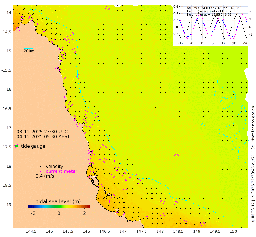 0cm/s 97T +11cm/s rms + 4cm/s -61T. GBRLSL 354m 13cm/s 30T +15cm/s rms + 2cm/s -84T. GBRLSH 32m 17cm/s 61T +15cm/s rms + 5cm/s -155T. GBRPPS 72m 6cm/s 60T +17cm/s rms + 13cm/s 115T. GBRMYR 223m 22cm/s 111T +18cm/s rms + 0cm/s -9T. NRSYON 29m 63cm Osprey Reef - West 85cm Stanley Island 62cm Pipon Islands 74cm Cape Melville 83cm Munro Reef 82cm Leggatt Island 94cm Normanby River 77cm Carter Reef 72cm Lizard Island (QLD) 81cm East Petherbridge Island 72cm North Direction Island 80cm Cape Flattery 71cm Ribbon Reef No.9 72cm Low Wooded Island 70cm Cape Bedford 43cm Endeavour River North 74cm Cooktown 66cm Cruiser Passage 69cm East Hope Island 75cm Bailay Creek 67cm Low Islets 76cm Port Douglas 71cm Palm Cove 67cm Yorkeys Knob 73cm Michaelmas Cay 59cm Euston Reef 79cm Cairns 64cm Green Island 65cm Fitzroy Island 71cm Sudbury Cay 64cm High Island 54cm Russell Island 69cm Peart Reef 63cm Nathan Reef 80cm Mourilyan Harbour 79cm Cowley Beach 90cm North Barnard Island 82cm Eddy Reef 103cm Beaver Reef 72cm Unnamed Reef No. 1 58cm Flinders Reef 83cm Clump Point 87cm Dunk Island 70cm Barnett Patches 89cm Goold Island 109cm Cardwell 72cm Britomart Reef 69cm Pith Reef 66cm Dip Reef 95cm Lucinda (Offshore) 85cm John Brewer Reef 94cm Albino Rock 79cm Shrimp Reef 71cm Jaguar Reef 100cm Townsville 93cm Cape Ferguson 100cm Stanley Reef 106cm Wallaby Reef 95cm Kennedy Reef