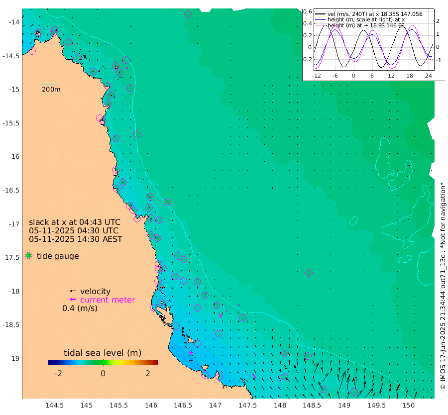 1cm/s -47T +11cm/s rms + 4cm/s -61T. GBRLSL 354m 13cm/s 5T +15cm/s rms + 2cm/s -84T. GBRLSH 32m 6cm/s -15T +15cm/s rms + 5cm/s -155T. GBRPPS 72m 5cm/s 11T +17cm/s rms + 13cm/s 115T. GBRMYR 223m 30cm/s -32T +18cm/s rms + 0cm/s -9T. NRSYON 29m -57cm Osprey Reef - West -71cm Stanley Island -76cm Pipon Islands -60cm Cape Melville -71cm Munro Reef -72cm Leggatt Island -90cm Normanby River -62cm Carter Reef -63cm Lizard Island (QLD) -64cm East Petherbridge Island -57cm North Direction Island -69cm Cape Flattery -61cm Ribbon Reef No.9 -58cm Low Wooded Island -53cm Cape Bedford -38cm Endeavour River North -66cm Cooktown -58cm Cruiser Passage -65cm East Hope Island -56cm Bailay Creek -64cm Low Islets -71cm Port Douglas -71cm Palm Cove -71cm Yorkeys Knob -60cm Michaelmas Cay -51cm Euston Reef -74cm Cairns -66cm Green Island -77cm Fitzroy Island -68cm Sudbury Cay -64cm High Island -59cm Russell Island -71cm Peart Reef -69cm Nathan Reef -73cm Mourilyan Harbour -75cm Cowley Beach -75cm North Barnard Island -73cm Eddy Reef -98cm Beaver Reef -69cm Unnamed Reef No. 1 -56cm Flinders Reef -79cm Clump Point -82cm Dunk Island -68cm Barnett Patches -86cm Goold Island -97cm Cardwell -78cm Britomart Reef -65cm Pith Reef -63cm Dip Reef -91cm Lucinda (Offshore) -78cm John Brewer Reef -93cm Albino Rock -66cm Shrimp Reef -65cm Jaguar Reef -98cm Townsville -91cm Cape Ferguson -68cm Stanley Reef -65cm Wallaby Reef -68cm Kennedy Reef