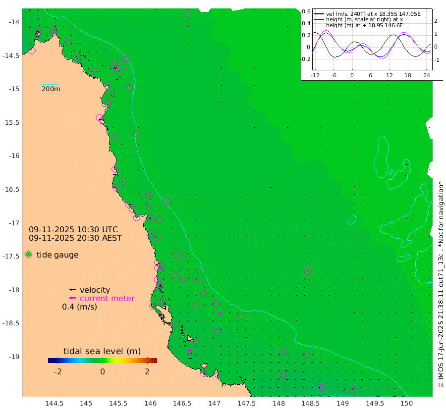 1cm/s 124T +11cm/s rms + 4cm/s -61T. GBRLSL 354m 2cm/s -8T +15cm/s rms + 2cm/s -84T. GBRLSH 32m 3cm/s -100T +15cm/s rms + 5cm/s -155T. GBRPPS 72m 2cm/s -94T +17cm/s rms + 13cm/s 115T. GBRMYR 223m 9cm/s -52T +18cm/s rms + 0cm/s -9T. NRSYON 29m -13cm Osprey Reef - West -19cm Stanley Island -25cm Pipon Islands -18cm Cape Melville -16cm Munro Reef -18cm Leggatt Island -24cm Normanby River -16cm Carter Reef -20cm Lizard Island (QLD) -13cm East Petherbridge Island -15cm North Direction Island -15cm Cape Flattery -14cm Ribbon Reef No.9 -12cm Low Wooded Island -13cm Cape Bedford -17cm Endeavour River North -17cm Cooktown -14cm Cruiser Passage -16cm East Hope Island -18cm Bailay Creek -14cm Low Islets -18cm Port Douglas -17cm Palm Cove -20cm Yorkeys Knob -19cm Michaelmas Cay -8cm Euston Reef -18cm Cairns -18cm Green Island -20cm Fitzroy Island -17cm Sudbury Cay -23cm High Island -16cm Russell Island -20cm Peart Reef -18cm Nathan Reef -19cm Mourilyan Harbour -21cm Cowley Beach -36cm North Barnard Island -12cm Eddy Reef -24cm Beaver Reef -18cm Unnamed Reef No. 1 -13cm Flinders Reef -21cm Clump Point -26cm Dunk Island -22cm Barnett Patches -26cm Goold Island -28cm Cardwell -21cm Britomart Reef -19cm Pith Reef -14cm Dip Reef -25cm Lucinda (Offshore) -28cm John Brewer Reef -21cm Albino Rock -24cm Shrimp Reef -22cm Jaguar Reef -28cm Townsville -27cm Cape Ferguson -36cm Stanley Reef -39cm Wallaby Reef -30cm Kennedy Reef
