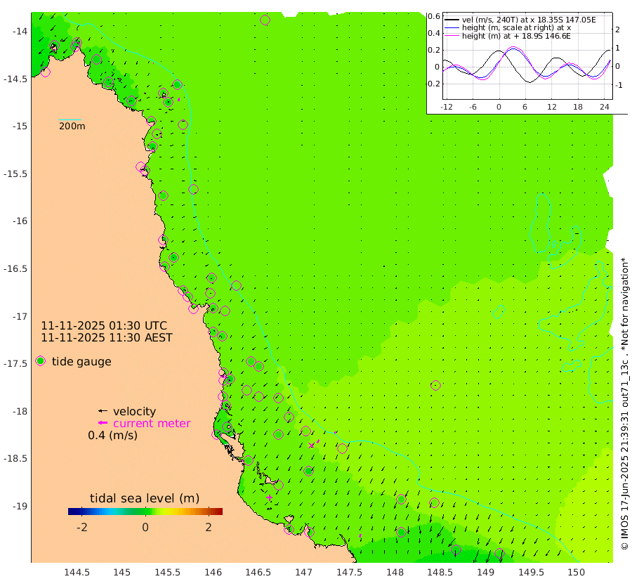 2cm/s -85T +11cm/s rms + 4cm/s -61T. GBRLSL 354m 15cm/s -163T +15cm/s rms + 2cm/s -84T. GBRLSH 32m 14cm/s -139T +15cm/s rms + 5cm/s -155T. GBRPPS 72m 7cm/s -134T +17cm/s rms + 13cm/s 115T. GBRMYR 223m 13cm/s -171T +18cm/s rms + 0cm/s -9T. NRSYON 29m 26cm Osprey Reef - West 7cm Stanley Island 2cm Pipon Islands 10cm Cape Melville 11cm Munro Reef 12cm Leggatt Island 9cm Normanby River 11cm Carter Reef 16cm Lizard Island (QLD) 10cm East Petherbridge Island 13cm North Direction Island 17cm Cape Flattery 24cm Ribbon Reef No.9 29cm Low Wooded Island 13cm Cape Bedford 24cm Endeavour River North 18cm Cooktown 27cm Cruiser Passage 19cm East Hope Island 10cm Bailay Creek 14cm Low Islets 18cm Port Douglas 22cm Palm Cove 20cm Yorkeys Knob 18cm Michaelmas Cay 25cm Euston Reef 18cm Cairns 25cm Green Island 20cm Fitzroy Island 23cm Sudbury Cay 21cm High Island 20cm Russell Island 17cm Peart Reef 18cm Nathan Reef 19cm Mourilyan Harbour 19cm Cowley Beach 7cm North Barnard Island 28cm Eddy Reef 23cm Beaver Reef 26cm Unnamed Reef No. 1 31cm Flinders Reef 20cm Clump Point 17cm Dunk Island 23cm Barnett Patches 20cm Goold Island 11cm Cardwell 22cm Britomart Reef 27cm Pith Reef 35cm Dip Reef 18cm Lucinda (Offshore) 7cm John Brewer Reef 26cm Albino Rock 22cm Shrimp Reef 29cm Jaguar Reef 18cm Townsville 20cm Cape Ferguson 10cm Stanley Reef 11cm Wallaby Reef 22cm Kennedy Reef