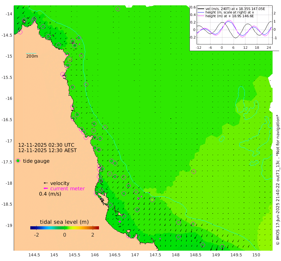 2cm/s -79T +11cm/s rms + 4cm/s -61T. GBRLSL 354m 12cm/s -160T +15cm/s rms + 2cm/s -84T. GBRLSH 32m 15cm/s -137T +15cm/s rms + 5cm/s -155T. GBRPPS 72m 7cm/s -134T +17cm/s rms + 13cm/s 115T. GBRMYR 223m 11cm/s -159T +18cm/s rms + 0cm/s -9T. NRSYON 29m 18cm Osprey Reef - West -2cm Stanley Island -4cm Pipon Islands 5cm Cape Melville 2cm Munro Reef 3cm Leggatt Island -3cm Normanby River 4cm Carter Reef 9cm Lizard Island (QLD) 3cm East Petherbridge Island 7cm North Direction Island 9cm Cape Flattery 16cm Ribbon Reef No.9 23cm Low Wooded Island 7cm Cape Bedford 16cm Endeavour River North 10cm Cooktown 19cm Cruiser Passage 14cm East Hope Island 4cm Bailay Creek 7cm Low Islets 10cm Port Douglas 14cm Palm Cove 12cm Yorkeys Knob 11cm Michaelmas Cay 21cm Euston Reef 10cm Cairns 17cm Green Island 13cm Fitzroy Island 15cm Sudbury Cay 15cm High Island 14cm Russell Island 8cm Peart Reef 10cm Nathan Reef 10cm Mourilyan Harbour 11cm Cowley Beach -2cm North Barnard Island 19cm Eddy Reef 11cm Beaver Reef 17cm Unnamed Reef No. 1 24cm Flinders Reef 11cm Clump Point 8cm Dunk Island 15cm Barnett Patches 10cm Goold Island 0cm Cardwell 14cm Britomart Reef 21cm Pith Reef 26cm Dip Reef 7cm Lucinda (Offshore) -1cm John Brewer Reef 14cm Albino Rock 16cm Shrimp Reef 21cm Jaguar Reef 7cm Townsville 10cm Cape Ferguson 3cm Stanley Reef 2cm Wallaby Reef 14cm Kennedy Reef