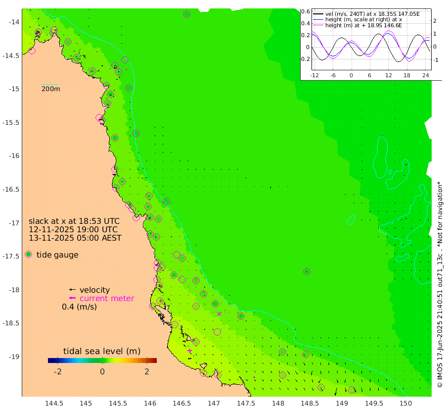 2cm/s 104T +11cm/s rms + 4cm/s -61T. GBRLSL 354m 6cm/s -171T +15cm/s rms + 2cm/s -84T. GBRLSH 32m 3cm/s 148T +15cm/s rms + 5cm/s -155T. GBRPPS 72m 3cm/s 152T +17cm/s rms + 13cm/s 115T. GBRMYR 223m 10cm/s 147T +18cm/s rms + 0cm/s -9T. NRSYON 29m 12cm Osprey Reef - West 24cm Stanley Island 39cm Pipon Islands 20cm Cape Melville 18cm Munro Reef 21cm Leggatt Island 31cm Normanby River 17cm Carter Reef 19cm Lizard Island (QLD) 18cm East Petherbridge Island 17cm North Direction Island 19cm Cape Flattery 13cm Ribbon Reef No.9 10cm Low Wooded Island 17cm Cape Bedford 4cm Endeavour River North 19cm Cooktown 12cm Cruiser Passage 14cm East Hope Island 13cm Bailay Creek 17cm Low Islets 22cm Port Douglas 22cm Palm Cove 23cm Yorkeys Knob 17cm Michaelmas Cay 10cm Euston Reef 23cm Cairns 19cm Green Island 21cm Fitzroy Island 16cm Sudbury Cay 22cm High Island 20cm Russell Island 25cm Peart Reef 22cm Nathan Reef 23cm Mourilyan Harbour 26cm Cowley Beach 26cm North Barnard Island 14cm Eddy Reef 25cm Beaver Reef 19cm Unnamed Reef No. 1 12cm Flinders Reef 26cm Clump Point 31cm Dunk Island 17cm Barnett Patches 32cm Goold Island 36cm Cardwell 30cm Britomart Reef 14cm Pith Reef 12cm Dip Reef 33cm Lucinda (Offshore) 32cm John Brewer Reef 29cm Albino Rock 18cm Shrimp Reef 18cm Jaguar Reef 39cm Townsville 35cm Cape Ferguson 28cm Stanley Reef 25cm Wallaby Reef 28cm Kennedy Reef