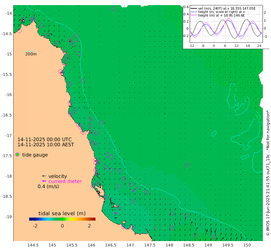 2cm/s -76T +11cm/s rms + 4cm/s -61T. GBRLSL 354m 13cm/s 13T +15cm/s rms + 2cm/s -84T. GBRLSH 32m 11cm/s 26T +15cm/s rms + 5cm/s -155T. GBRPPS 72m 6cm/s 26T +17cm/s rms + 13cm/s 115T. GBRMYR 223m 13cm/s -5T +18cm/s rms + 0cm/s -9T. NRSYON 29m -39cm Osprey Reef - West -38cm Stanley Island -48cm Pipon Islands -37cm Cape Melville -37cm Munro Reef -39cm Leggatt Island -42cm Normanby River -35cm Carter Reef -40cm Lizard Island (QLD) -39cm East Petherbridge Island -40cm North Direction Island -36cm Cape Flattery -36cm Ribbon Reef No.9 -43cm Low Wooded Island -37cm Cape Bedford -24cm Endeavour River North -41cm Cooktown -38cm Cruiser Passage -43cm East Hope Island -37cm Bailay Creek -41cm Low Islets -44cm Port Douglas -47cm Palm Cove -47cm Yorkeys Knob -36cm Michaelmas Cay -40cm Euston Reef -45cm Cairns -43cm Green Island -41cm Fitzroy Island -41cm Sudbury Cay -48cm High Island -43cm Russell Island -43cm Peart Reef -45cm Nathan Reef -44cm Mourilyan Harbour -46cm Cowley Beach -34cm North Barnard Island -44cm Eddy Reef -56cm Beaver Reef -45cm Unnamed Reef No. 1 -35cm Flinders Reef -47cm Clump Point -46cm Dunk Island -45cm Barnett Patches -52cm Goold Island -49cm Cardwell -54cm Britomart Reef -45cm Pith Reef -41cm Dip Reef -51cm Lucinda (Offshore) -38cm John Brewer Reef -51cm Albino Rock -42cm Shrimp Reef -44cm Jaguar Reef -55cm Townsville -53cm Cape Ferguson -39cm Stanley Reef -28cm Wallaby Reef -44cm Kennedy Reef