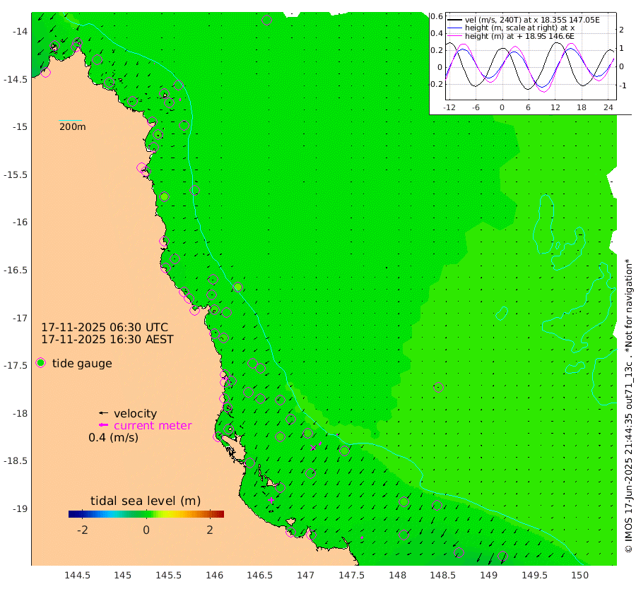 1cm/s -76T +11cm/s rms + 4cm/s -61T. GBRLSL 354m 9cm/s -155T +15cm/s rms + 2cm/s -84T. GBRLSH 32m 15cm/s -141T +15cm/s rms + 5cm/s -155T. GBRPPS 72m 6cm/s -143T +17cm/s rms + 13cm/s 115T. GBRMYR 223m 10cm/s -134T +18cm/s rms + 0cm/s -9T. NRSYON 29m 7cm Osprey Reef - West 4cm Stanley Island -4cm Pipon Islands 10cm Cape Melville 6cm Munro Reef 2cm Leggatt Island -3cm Normanby River 10cm Carter Reef 10cm Lizard Island (QLD) 11cm East Petherbridge Island 12cm North Direction Island 14cm Cape Flattery 11cm Ribbon Reef No.9 20cm Low Wooded Island 13cm Cape Bedford -6cm Endeavour River North 11cm Cooktown 14cm Cruiser Passage 23cm East Hope Island 5cm Bailay Creek 12cm Low Islets 10cm Port Douglas 13cm Palm Cove 8cm Yorkeys Knob 9cm Michaelmas Cay 28cm Euston Reef 11cm Cairns 14cm Green Island 19cm Fitzroy Island 13cm Sudbury Cay 13cm High Island 19cm Russell Island 10cm Peart Reef 9cm Nathan Reef 9cm Mourilyan Harbour 12cm Cowley Beach -4cm North Barnard Island 12cm Eddy Reef 11cm Beaver Reef 11cm Unnamed Reef No. 1 20cm Flinders Reef 9cm Clump Point 6cm Dunk Island 11cm Barnett Patches 8cm Goold Island 1cm Cardwell 17cm Britomart Reef 17cm Pith Reef 16cm Dip Reef 7cm Lucinda (Offshore) 7cm John Brewer Reef 10cm Albino Rock 16cm Shrimp Reef 14cm Jaguar Reef 8cm Townsville 9cm Cape Ferguson -6cm Stanley Reef -10cm Wallaby Reef 1cm Kennedy Reef
