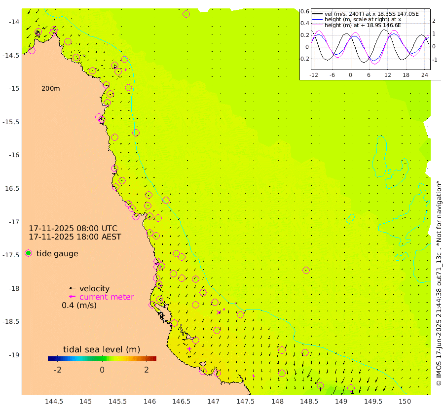 1cm/s -92T +11cm/s rms + 4cm/s -61T. GBRLSL 354m 14cm/s -168T +15cm/s rms + 2cm/s -84T. GBRLSH 32m 11cm/s -159T +15cm/s rms + 5cm/s -155T. GBRPPS 72m 5cm/s -154T +17cm/s rms + 13cm/s 115T. GBRMYR 223m 15cm/s 168T +18cm/s rms + 0cm/s -9T. NRSYON 29m 44cm Osprey Reef - West 49cm Stanley Island 41cm Pipon Islands 48cm Cape Melville 49cm Munro Reef 47cm Leggatt Island 54cm Normanby River 47cm Carter Reef 48cm Lizard Island (QLD) 57cm East Petherbridge Island 53cm North Direction Island 55cm Cape Flattery 50cm Ribbon Reef No.9 61cm Low Wooded Island 51cm Cape Bedford 20cm Endeavour River North 51cm Cooktown 50cm Cruiser Passage 56cm East Hope Island 47cm Bailay Creek 49cm Low Islets 53cm Port Douglas 55cm Palm Cove 49cm Yorkeys Knob 46cm Michaelmas Cay 57cm Euston Reef 55cm Cairns 50cm Green Island 50cm Fitzroy Island 50cm Sudbury Cay 48cm High Island 50cm Russell Island 50cm Peart Reef 47cm Nathan Reef 53cm Mourilyan Harbour 57cm Cowley Beach 38cm North Barnard Island 58cm Eddy Reef 68cm Beaver Reef 52cm Unnamed Reef No. 1 50cm Flinders Reef 56cm Clump Point 53cm Dunk Island 53cm Barnett Patches 59cm Goold Island 61cm Cardwell 61cm Britomart Reef 54cm Pith Reef 53cm Dip Reef 61cm Lucinda (Offshore) 49cm John Brewer Reef 66cm Albino Rock 54cm Shrimp Reef 50cm Jaguar Reef 66cm Townsville 63cm Cape Ferguson 44cm Stanley Reef 38cm Wallaby Reef 48cm Kennedy Reef