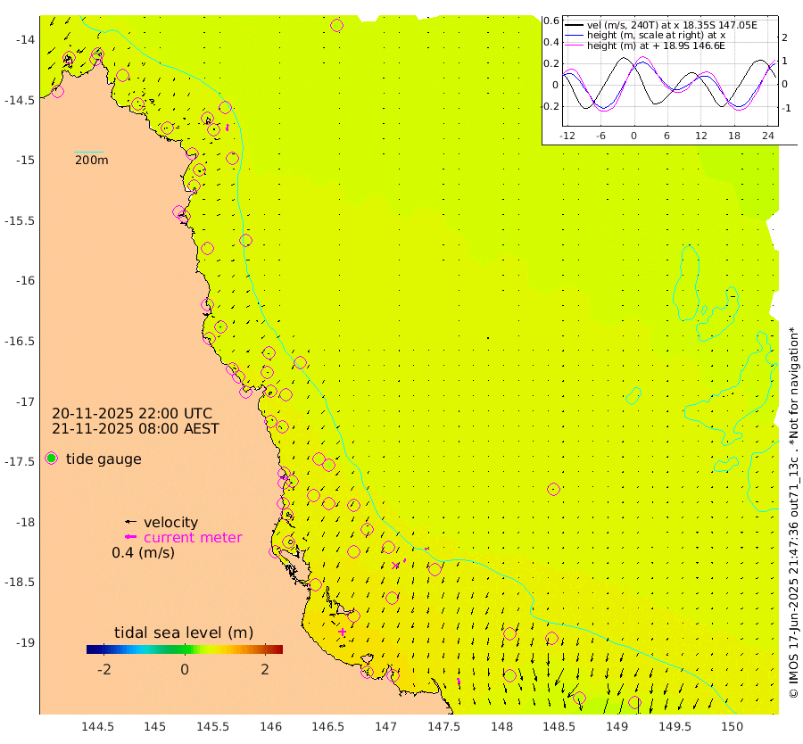 0cm/s 163T +11cm/s rms + 4cm/s -61T. GBRLSL 354m 22cm/s -170T +15cm/s rms + 2cm/s -84T. GBRLSH 32m 14cm/s -154T +15cm/s rms + 5cm/s -155T. GBRPPS 72m 6cm/s -144T +17cm/s rms + 13cm/s 115T. GBRMYR 223m 21cm/s 166T +18cm/s rms + 0cm/s -9T. NRSYON 29m 51cm Osprey Reef - West 55cm Stanley Island 33cm Pipon Islands 47cm Cape Melville 56cm Munro Reef 53cm Leggatt Island 58cm Normanby River 55cm Carter Reef 53cm Lizard Island (QLD) 57cm East Petherbridge Island 53cm North Direction Island 62cm Cape Flattery 57cm Ribbon Reef No.9 59cm Low Wooded Island 53cm Cape Bedford 32cm Endeavour River North 57cm Cooktown 57cm Cruiser Passage 66cm East Hope Island 49cm Bailay Creek 52cm Low Islets 59cm Port Douglas 60cm Palm Cove 54cm Yorkeys Knob 55cm Michaelmas Cay 70cm Euston Reef 60cm Cairns 62cm Green Island 60cm Fitzroy Island 60cm Sudbury Cay 53cm High Island 57cm Russell Island 56cm Peart Reef 52cm Nathan Reef 60cm Mourilyan Harbour 65cm Cowley Beach 49cm North Barnard Island 66cm Eddy Reef 79cm Beaver Reef 61cm Unnamed Reef No. 1 61cm Flinders Reef 64cm Clump Point 63cm Dunk Island 58cm Barnett Patches 67cm Goold Island 68cm Cardwell 65cm Britomart Reef 62cm Pith Reef 61cm Dip Reef 69cm Lucinda (Offshore) 57cm John Brewer Reef 77cm Albino Rock 65cm Shrimp Reef 68cm Jaguar Reef 74cm Townsville 72cm Cape Ferguson 51cm Stanley Reef 51cm Wallaby Reef 57cm Kennedy Reef