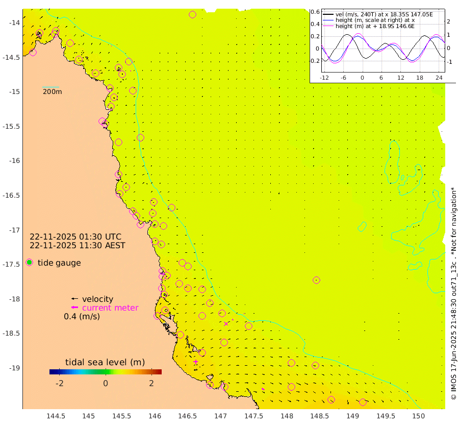 2cm/s -67T +11cm/s rms + 4cm/s -61T. GBRLSL 354m 4cm/s 51T +15cm/s rms + 2cm/s -84T. GBRLSH 32m 8cm/s 78T +15cm/s rms + 5cm/s -155T. GBRPPS 72m 1cm/s 72T +17cm/s rms + 13cm/s 115T. GBRMYR 223m 17cm/s 125T +18cm/s rms + 0cm/s -9T. NRSYON 29m 66cm Osprey Reef - West 70cm Stanley Island 47cm Pipon Islands 67cm Cape Melville 70cm Munro Reef 70cm Leggatt Island 73cm Normanby River 68cm Carter Reef 67cm Lizard Island (QLD) 73cm East Petherbridge Island 69cm North Direction Island 70cm Cape Flattery 69cm Ribbon Reef No.9 76cm Low Wooded Island 67cm Cape Bedford 49cm Endeavour River North 68cm Cooktown 67cm Cruiser Passage 66cm East Hope Island 71cm Bailay Creek 61cm Low Islets 69cm Port Douglas 68cm Palm Cove 63cm Yorkeys Knob 69cm Michaelmas Cay 66cm Euston Reef 71cm Cairns 63cm Green Island 55cm Fitzroy Island 67cm Sudbury Cay 64cm High Island 53cm Russell Island 60cm Peart Reef 58cm Nathan Reef 72cm Mourilyan Harbour 72cm Cowley Beach 71cm North Barnard Island 80cm Eddy Reef 91cm Beaver Reef 71cm Unnamed Reef No. 1 61cm Flinders Reef 74cm Clump Point 74cm Dunk Island 71cm Barnett Patches 78cm Goold Island 87cm Cardwell 67cm Britomart Reef 73cm Pith Reef 72cm Dip Reef 81cm Lucinda (Offshore) 65cm John Brewer Reef 84cm Albino Rock 77cm Shrimp Reef 73cm Jaguar Reef 84cm Townsville 81cm Cape Ferguson 90cm Stanley Reef 93cm Wallaby Reef 92cm Kennedy Reef