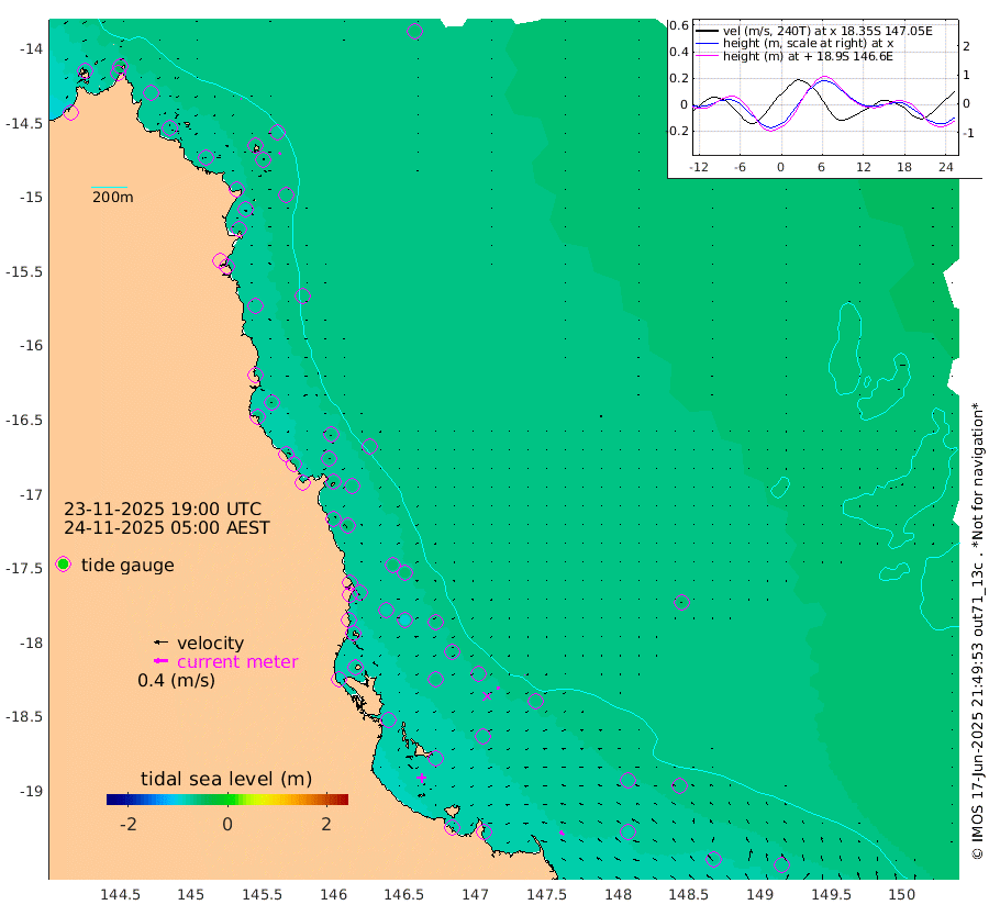 1cm/s 108T +11cm/s rms + 4cm/s -61T. GBRLSL 354m 5cm/s -132T +15cm/s rms + 2cm/s -84T. GBRLSH 32m 6cm/s -97T +15cm/s rms + 5cm/s -155T. GBRPPS 72m 0cm/s -78T +17cm/s rms + 13cm/s 115T. GBRMYR 223m 15cm/s -50T +18cm/s rms + 0cm/s -9T. NRSYON 29m -60cm Osprey Reef - West -69cm Stanley Island -48cm Pipon Islands -65cm Cape Melville -72cm Munro Reef -71cm Leggatt Island -72cm Normanby River -69cm Carter Reef -65cm Lizard Island (QLD) -70cm East Petherbridge Island -64cm North Direction Island -71cm Cape Flattery -65cm Ribbon Reef No.9 -77cm Low Wooded Island -62cm Cape Bedford -38cm Endeavour River North -66cm Cooktown -63cm Cruiser Passage -71cm East Hope Island -70cm Bailay Creek -65cm Low Islets -67cm Port Douglas -66cm Palm Cove -61cm Yorkeys Knob -65cm Michaelmas Cay -62cm Euston Reef -70cm Cairns -60cm Green Island -65cm Fitzroy Island -67cm Sudbury Cay -63cm High Island -53cm Russell Island -60cm Peart Reef -58cm Nathan Reef -70cm Mourilyan Harbour -67cm Cowley Beach -71cm North Barnard Island -78cm Eddy Reef -93cm Beaver Reef -66cm Unnamed Reef No. 1 -56cm Flinders Reef -72cm Clump Point -72cm Dunk Island -66cm Barnett Patches -74cm Goold Island -85cm Cardwell -66cm Britomart Reef -69cm Pith Reef -66cm Dip Reef -78cm Lucinda (Offshore) -68cm John Brewer Reef -80cm Albino Rock -73cm Shrimp Reef -64cm Jaguar Reef -79cm Townsville -75cm Cape Ferguson -76cm Stanley Reef -74cm Wallaby Reef -73cm Kennedy Reef