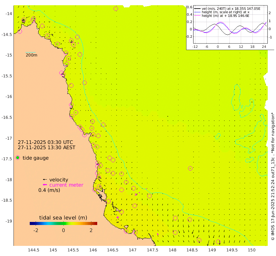 3cm/s -74T +11cm/s rms + 4cm/s -61T. GBRLSL 354m 8cm/s -169T +15cm/s rms + 2cm/s -84T. GBRLSH 32m 8cm/s -165T +15cm/s rms + 5cm/s -155T. GBRPPS 72m 4cm/s -153T +17cm/s rms + 13cm/s 115T. GBRMYR 223m 16cm/s 158T +18cm/s rms + 0cm/s -9T. NRSYON 29m 53cm Osprey Reef - West 56cm Stanley Island 44cm Pipon Islands 59cm Cape Melville 60cm Munro Reef 58cm Leggatt Island 58cm Normanby River 62cm Carter Reef 62cm Lizard Island (QLD) 52cm East Petherbridge Island 53cm North Direction Island 64cm Cape Flattery 60cm Ribbon Reef No.9 66cm Low Wooded Island 49cm Cape Bedford 31cm Endeavour River North 61cm Cooktown 60cm Cruiser Passage 70cm East Hope Island 50cm Bailay Creek 58cm Low Islets 61cm Port Douglas 63cm Palm Cove 62cm Yorkeys Knob 59cm Michaelmas Cay 55cm Euston Reef 63cm Cairns 62cm Green Island 78cm Fitzroy Island 65cm Sudbury Cay 66cm High Island 57cm Russell Island 62cm Peart Reef 61cm Nathan Reef 63cm Mourilyan Harbour 62cm Cowley Beach 67cm North Barnard Island 64cm Eddy Reef 82cm Beaver Reef 63cm Unnamed Reef No. 1 64cm Flinders Reef 66cm Clump Point 67cm Dunk Island 64cm Barnett Patches 69cm Goold Island 70cm Cardwell 69cm Britomart Reef 68cm Pith Reef 68cm Dip Reef 69cm Lucinda (Offshore) 70cm John Brewer Reef 69cm Albino Rock 72cm Shrimp Reef 64cm Jaguar Reef 72cm Townsville 70cm Cape Ferguson 62cm Stanley Reef 62cm Wallaby Reef 63cm Kennedy Reef