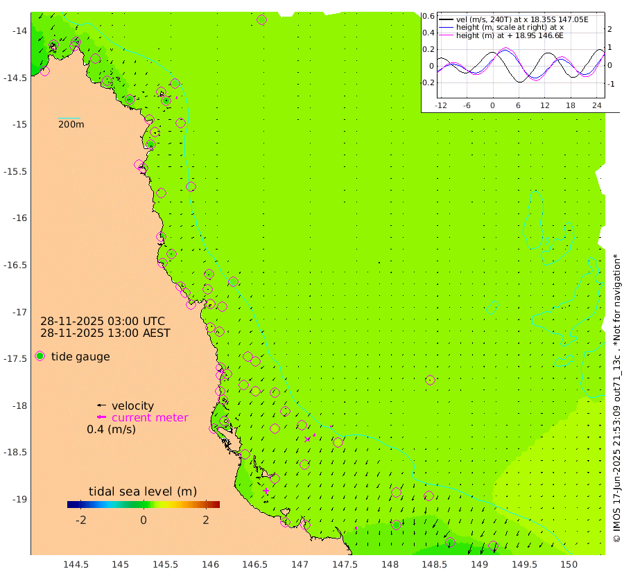 3cm/s -79T +11cm/s rms + 4cm/s -61T. GBRLSL 354m 9cm/s -161T +15cm/s rms + 2cm/s -84T. GBRLSH 32m 12cm/s -146T +15cm/s rms + 5cm/s -155T. GBRPPS 72m 5cm/s -143T +17cm/s rms + 13cm/s 115T. GBRMYR 223m 12cm/s -178T +18cm/s rms + 0cm/s -9T. NRSYON 29m 29cm Osprey Reef - West 21cm Stanley Island 16cm Pipon Islands 26cm Cape Melville 25cm Munro Reef 26cm Leggatt Island 23cm Normanby River 27cm Carter Reef 30cm Lizard Island (QLD) 17cm East Petherbridge Island 20cm North Direction Island 31cm Cape Flattery 32cm Ribbon Reef No.9 38cm Low Wooded Island 18cm Cape Bedford 20cm Endeavour River North 30cm Cooktown 35cm Cruiser Passage 36cm East Hope Island 16cm Bailay Creek 29cm Low Islets 30cm Port Douglas 34cm Palm Cove 35cm Yorkeys Knob 29cm Michaelmas Cay 24cm Euston Reef 30cm Cairns 35cm Green Island 47cm Fitzroy Island 35cm Sudbury Cay 38cm High Island 34cm Russell Island 35cm Peart Reef 35cm Nathan Reef 30cm Mourilyan Harbour 28cm Cowley Beach 31cm North Barnard Island 30cm Eddy Reef 39cm Beaver Reef 34cm Unnamed Reef No. 1 40cm Flinders Reef 31cm Clump Point 34cm Dunk Island 33cm Barnett Patches 34cm Goold Island 26cm Cardwell 38cm Britomart Reef 35cm Pith Reef 43cm Dip Reef 30cm Lucinda (Offshore) 35cm John Brewer Reef 32cm Albino Rock 35cm Shrimp Reef 32cm Jaguar Reef 31cm Townsville 32cm Cape Ferguson 21cm Stanley Reef 18cm Wallaby Reef 23cm Kennedy Reef
