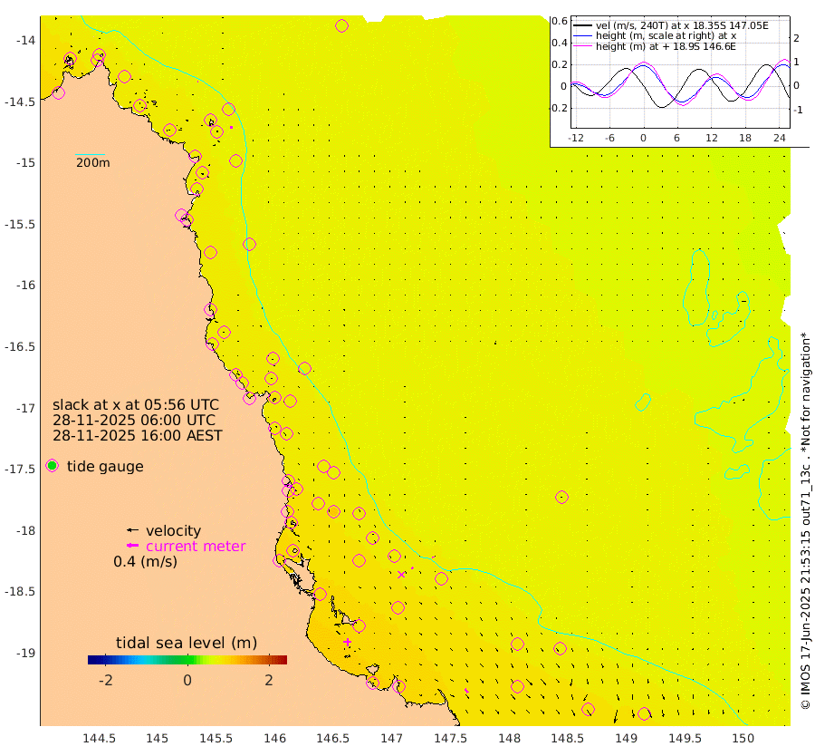 2cm/s -63T +11cm/s rms + 4cm/s -61T. GBRLSL 354m 6cm/s -179T +15cm/s rms + 2cm/s -84T. GBRLSH 32m 5cm/s 140T +15cm/s rms + 5cm/s -155T. GBRPPS 72m 2cm/s 156T +17cm/s rms + 13cm/s 115T. GBRMYR 223m 15cm/s 139T +18cm/s rms + 0cm/s -9T. NRSYON 29m 63cm Osprey Reef - West 79cm Stanley Island 62cm Pipon Islands 77cm Cape Melville 81cm Munro Reef 76cm Leggatt Island 83cm Normanby River 79cm Carter Reef 78cm Lizard Island (QLD) 79cm East Petherbridge Island 76cm North Direction Island 81cm Cape Flattery 72cm Ribbon Reef No.9 82cm Low Wooded Island 71cm Cape Bedford 38cm Endeavour River North 77cm Cooktown 72cm Cruiser Passage 85cm East Hope Island 75cm Bailay Creek 75cm Low Islets 78cm Port Douglas 78cm Palm Cove 76cm Yorkeys Knob 73cm Michaelmas Cay 69cm Euston Reef 81cm Cairns 73cm Green Island 83cm Fitzroy Island 77cm Sudbury Cay 78cm High Island 69cm Russell Island 77cm Peart Reef 74cm Nathan Reef 80cm Mourilyan Harbour 82cm Cowley Beach 86cm North Barnard Island 78cm Eddy Reef 105cm Beaver Reef 76cm Unnamed Reef No. 1 69cm Flinders Reef 83cm Clump Point 85cm Dunk Island 82cm Barnett Patches 88cm Goold Island 96cm Cardwell 85cm Britomart Reef 80cm Pith Reef 74cm Dip Reef 91cm Lucinda (Offshore) 88cm John Brewer Reef 89cm Albino Rock 88cm Shrimp Reef 75cm Jaguar Reef 95cm Townsville 92cm Cape Ferguson 87cm Stanley Reef 86cm Wallaby Reef 81cm Kennedy Reef