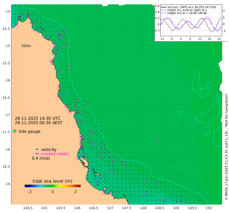 2cm/s 112T +11cm/s rms + 4cm/s -61T. GBRLSL 354m 2cm/s -145T +15cm/s rms + 2cm/s -84T. GBRLSH 32m 8cm/s -114T +15cm/s rms + 5cm/s -155T. GBRPPS 72m 3cm/s -117T +17cm/s rms + 13cm/s 115T. GBRMYR 223m 9cm/s -82T +18cm/s rms + 0cm/s -9T. NRSYON 29m -41cm Osprey Reef - West -56cm Stanley Island -26cm Pipon Islands -48cm Cape Melville -51cm Munro Reef -49cm Leggatt Island -61cm Normanby River -44cm Carter Reef -49cm Lizard Island (QLD) -60cm East Petherbridge Island -55cm North Direction Island -52cm Cape Flattery -48cm Ribbon Reef No.9 -53cm Low Wooded Island -53cm Cape Bedford -38cm Endeavour River North -49cm Cooktown -46cm Cruiser Passage -45cm East Hope Island -52cm Bailay Creek -46cm Low Islets -48cm Port Douglas -46cm Palm Cove -44cm Yorkeys Knob -47cm Michaelmas Cay -41cm Euston Reef -49cm Cairns -43cm Green Island -33cm Fitzroy Island -44cm Sudbury Cay -41cm High Island -40cm Russell Island -48cm Peart Reef -41cm Nathan Reef -50cm Mourilyan Harbour -54cm Cowley Beach -55cm North Barnard Island -50cm Eddy Reef -65cm Beaver Reef -47cm Unnamed Reef No. 1 -40cm Flinders Reef -52cm Clump Point -52cm Dunk Island -53cm Barnett Patches -56cm Goold Island -64cm Cardwell -46cm Britomart Reef -47cm Pith Reef -45cm Dip Reef -58cm Lucinda (Offshore) -54cm John Brewer Reef -58cm Albino Rock -53cm Shrimp Reef -44cm Jaguar Reef -61cm Townsville -58cm Cape Ferguson -66cm Stanley Reef -69cm Wallaby Reef -59cm Kennedy Reef