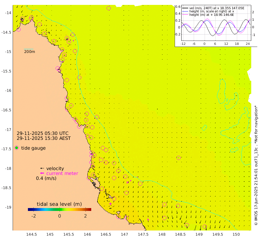 2cm/s -73T +11cm/s rms + 4cm/s -61T. GBRLSL 354m 12cm/s -166T +15cm/s rms + 2cm/s -84T. GBRLSH 32m 10cm/s -164T +15cm/s rms + 5cm/s -155T. GBRPPS 72m 5cm/s -160T +17cm/s rms + 13cm/s 115T. GBRMYR 223m 17cm/s 160T +18cm/s rms + 0cm/s -9T. NRSYON 29m 57cm Osprey Reef - West 64cm Stanley Island 54cm Pipon Islands 64cm Cape Melville 67cm Munro Reef 64cm Leggatt Island 70cm Normanby River 65cm Carter Reef 68cm Lizard Island (QLD) 62cm East Petherbridge Island 61cm North Direction Island 70cm Cape Flattery 65cm Ribbon Reef No.9 76cm Low Wooded Island 57cm Cape Bedford 36cm Endeavour River North 68cm Cooktown 66cm Cruiser Passage 77cm East Hope Island 59cm Bailay Creek 67cm Low Islets 69cm Port Douglas 72cm Palm Cove 72cm Yorkeys Knob 63cm Michaelmas Cay 58cm Euston Reef 71cm Cairns 69cm Green Island 81cm Fitzroy Island 70cm Sudbury Cay 74cm High Island 67cm Russell Island 72cm Peart Reef 70cm Nathan Reef 70cm Mourilyan Harbour 71cm Cowley Beach 73cm North Barnard Island 68cm Eddy Reef 93cm Beaver Reef 69cm Unnamed Reef No. 1 67cm Flinders Reef 74cm Clump Point 77cm Dunk Island 73cm Barnett Patches 80cm Goold Island 79cm Cardwell 80cm Britomart Reef 72cm Pith Reef 71cm Dip Reef 79cm Lucinda (Offshore) 79cm John Brewer Reef 78cm Albino Rock 76cm Shrimp Reef 66cm Jaguar Reef 83cm Townsville 81cm Cape Ferguson 68cm Stanley Reef 61cm Wallaby Reef 64cm Kennedy Reef