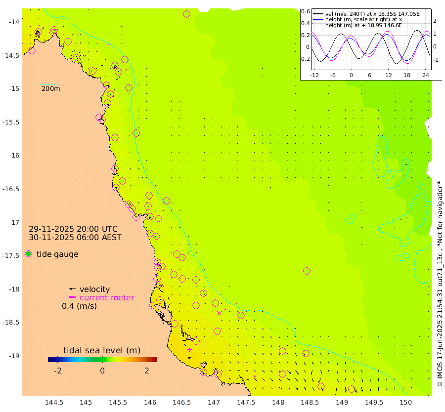 2cm/s 99T +11cm/s rms + 4cm/s -61T. GBRLSL 354m 4cm/s 167T +15cm/s rms + 2cm/s -84T. GBRLSH 32m 5cm/s 110T +15cm/s rms + 5cm/s -155T. GBRPPS 72m 2cm/s 129T +17cm/s rms + 13cm/s 115T. GBRMYR 223m 15cm/s 137T +18cm/s rms + 0cm/s -9T. NRSYON 29m 38cm Osprey Reef - West 55cm Stanley Island 46cm Pipon Islands 46cm Cape Melville 50cm Munro Reef 50cm Leggatt Island 59cm Normanby River 48cm Carter Reef 47cm Lizard Island (QLD) 53cm East Petherbridge Island 49cm North Direction Island 52cm Cape Flattery 43cm Ribbon Reef No.9 42cm Low Wooded Island 49cm Cape Bedford 24cm Endeavour River North 49cm Cooktown 40cm Cruiser Passage 50cm East Hope Island 47cm Bailay Creek 45cm Low Islets 52cm Port Douglas 50cm Palm Cove 45cm Yorkeys Knob 47cm Michaelmas Cay 49cm Euston Reef 53cm Cairns 47cm Green Island 44cm Fitzroy Island 46cm Sudbury Cay 46cm High Island 44cm Russell Island 48cm Peart Reef 43cm Nathan Reef 53cm Mourilyan Harbour 58cm Cowley Beach 56cm North Barnard Island 50cm Eddy Reef 68cm Beaver Reef 48cm Unnamed Reef No. 1 40cm Flinders Reef 58cm Clump Point 61cm Dunk Island 47cm Barnett Patches 63cm Goold Island 72cm Cardwell 56cm Britomart Reef 46cm Pith Reef 40cm Dip Reef 67cm Lucinda (Offshore) 59cm John Brewer Reef 66cm Albino Rock 55cm Shrimp Reef 53cm Jaguar Reef 73cm Townsville 68cm Cape Ferguson 62cm Stanley Reef 61cm Wallaby Reef 64cm Kennedy Reef