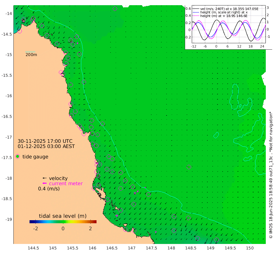 2cm/s 109T +11cm/s rms + 4cm/s -61T. GBRLSL 354m 16cm/s -160T +15cm/s rms + 2cm/s -84T. GBRLSH 32m 19cm/s -135T +15cm/s rms + 5cm/s -155T. GBRPPS 72m 8cm/s -139T +17cm/s rms + 13cm/s 115T. GBRMYR 223m 14cm/s -137T +18cm/s rms + 0cm/s -9T. NRSYON 29m -17cm Osprey Reef - West -32cm Stanley Island -6cm Pipon Islands -25cm Cape Melville -28cm Munro Reef -27cm Leggatt Island -38cm Normanby River -19cm Carter Reef -22cm Lizard Island (QLD) -36cm East Petherbridge Island -29cm North Direction Island -25cm Cape Flattery -22cm Ribbon Reef No.9 -28cm Low Wooded Island -28cm Cape Bedford -24cm Endeavour River North -21cm Cooktown -19cm Cruiser Passage -12cm East Hope Island -34cm Bailay Creek -20cm Low Islets -19cm Port Douglas -15cm Palm Cove -14cm Yorkeys Knob -21cm Michaelmas Cay -9cm Euston Reef -20cm Cairns -10cm Green Island 0cm Fitzroy Island -16cm Sudbury Cay -10cm High Island -8cm Russell Island -16cm Peart Reef -11cm Nathan Reef -21cm Mourilyan Harbour -20cm Cowley Beach -32cm North Barnard Island -23cm Eddy Reef -29cm Beaver Reef -16cm Unnamed Reef No. 1 -7cm Flinders Reef -20cm Clump Point -20cm Dunk Island -23cm Barnett Patches -21cm Goold Island -35cm Cardwell -7cm Britomart Reef -16cm Pith Reef -15cm Dip Reef -25cm Lucinda (Offshore) -22cm John Brewer Reef -25cm Albino Rock -20cm Shrimp Reef -9cm Jaguar Reef -23cm Townsville -21cm Cape Ferguson -42cm Stanley Reef -47cm Wallaby Reef -29cm Kennedy Reef