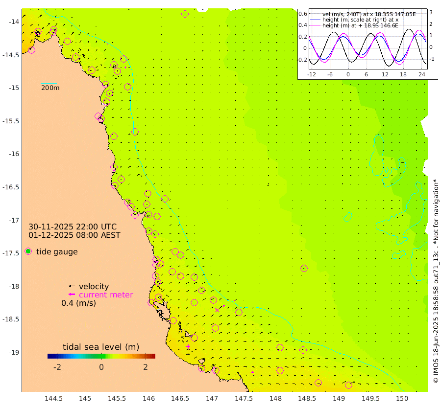 1cm/s 96T +11cm/s rms + 4cm/s -61T. GBRLSL 354m 9cm/s 30T +15cm/s rms + 2cm/s -84T. GBRLSH 32m 13cm/s 62T +15cm/s rms + 5cm/s -155T. GBRPPS 72m 5cm/s 64T +17cm/s rms + 13cm/s 115T. GBRMYR 223m 14cm/s 106T +18cm/s rms + 0cm/s -9T. NRSYON 29m 45cm Osprey Reef - West 65cm Stanley Island 40cm Pipon Islands 53cm Cape Melville 59cm Munro Reef 58cm Leggatt Island 68cm Normanby River 56cm Carter Reef 53cm Lizard Island (QLD) 64cm East Petherbridge Island 56cm North Direction Island 59cm Cape Flattery 51cm Ribbon Reef No.9 51cm Low Wooded Island 56cm Cape Bedford 32cm Endeavour River North 54cm Cooktown 46cm Cruiser Passage 50cm East Hope Island 56cm Bailay Creek 49cm Low Islets 55cm Port Douglas 51cm Palm Cove 47cm Yorkeys Knob 54cm Michaelmas Cay 48cm Euston Reef 57cm Cairns 47cm Green Island 40cm Fitzroy Island 50cm Sudbury Cay 45cm High Island 42cm Russell Island 50cm Peart Reef 43cm Nathan Reef 58cm Mourilyan Harbour 60cm Cowley Beach 63cm North Barnard Island 58cm Eddy Reef 74cm Beaver Reef 52cm Unnamed Reef No. 1 42cm Flinders Reef 61cm Clump Point 64cm Dunk Island 52cm Barnett Patches 65cm Goold Island 80cm Cardwell 52cm Britomart Reef 49cm Pith Reef 46cm Dip Reef 70cm Lucinda (Offshore) 63cm John Brewer Reef 70cm Albino Rock 59cm Shrimp Reef 53cm Jaguar Reef 74cm Townsville 69cm Cape Ferguson 76cm Stanley Reef 80cm Wallaby Reef 72cm Kennedy Reef