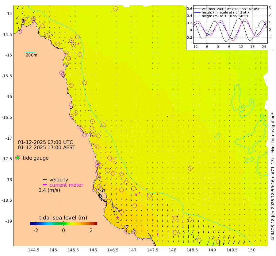 1cm/s -81T +11cm/s rms + 4cm/s -61T. GBRLSL 354m 16cm/s -167T +15cm/s rms + 2cm/s -84T. GBRLSH 32m 12cm/s -162T +15cm/s rms + 5cm/s -155T. GBRPPS 72m 6cm/s -159T +17cm/s rms + 13cm/s 115T. GBRMYR 223m 19cm/s 163T +18cm/s rms + 0cm/s -9T. NRSYON 29m 55cm Osprey Reef - West 62cm Stanley Island 56cm Pipon Islands 58cm Cape Melville 63cm Munro Reef 63cm Leggatt Island 73cm Normanby River 60cm Carter Reef 64cm Lizard Island (QLD) 61cm East Petherbridge Island 58cm North Direction Island 67cm Cape Flattery 63cm Ribbon Reef No.9 78cm Low Wooded Island 56cm Cape Bedford 35cm Endeavour River North 65cm Cooktown 65cm Cruiser Passage 71cm East Hope Island 58cm Bailay Creek 65cm Low Islets 68cm Port Douglas 71cm Palm Cove 71cm Yorkeys Knob 58cm Michaelmas Cay 53cm Euston Reef 70cm Cairns 67cm Green Island 73cm Fitzroy Island 66cm Sudbury Cay 71cm High Island 66cm Russell Island 72cm Peart Reef 68cm Nathan Reef 68cm Mourilyan Harbour 70cm Cowley Beach 66cm North Barnard Island 66cm Eddy Reef 91cm Beaver Reef 67cm Unnamed Reef No. 1 62cm Flinders Reef 73cm Clump Point 76cm Dunk Island 70cm Barnett Patches 79cm Goold Island 78cm Cardwell 80cm Britomart Reef 65cm Pith Reef 68cm Dip Reef 78cm Lucinda (Offshore) 75cm John Brewer Reef 79cm Albino Rock 68cm Shrimp Reef 60cm Jaguar Reef 84cm Townsville 80cm Cape Ferguson 62cm Stanley Reef 49cm Wallaby Reef 55cm Kennedy Reef