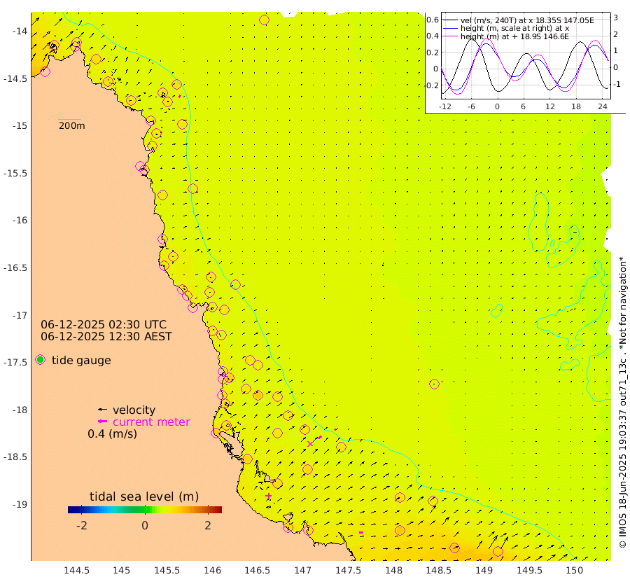 2cm/s -63T +11cm/s rms + 4cm/s -61T. GBRLSL 354m 12cm/s 31T +15cm/s rms + 2cm/s -84T. GBRLSH 32m 17cm/s 57T +15cm/s rms + 5cm/s -155T. GBRPPS 72m 7cm/s 49T +17cm/s rms + 13cm/s 115T. GBRMYR 223m 17cm/s 93T +18cm/s rms + 0cm/s -9T. NRSYON 29m 69cm Osprey Reef - West 86cm Stanley Island 58cm Pipon Islands 82cm Cape Melville 87cm Munro Reef 86cm Leggatt Island 88cm Normanby River 86cm Carter Reef 81cm Lizard Island (QLD) 80cm East Petherbridge Island 76cm North Direction Island 80cm Cape Flattery 76cm Ribbon Reef No.9 79cm Low Wooded Island 71cm Cape Bedford 48cm Endeavour River North 78cm Cooktown 72cm Cruiser Passage 77cm East Hope Island 80cm Bailay Creek 74cm Low Islets 78cm Port Douglas 75cm Palm Cove 77cm Yorkeys Knob 79cm Michaelmas Cay 55cm Euston Reef 80cm Cairns 70cm Green Island 75cm Fitzroy Island 76cm Sudbury Cay 77cm High Island 60cm Russell Island 75cm Peart Reef 73cm Nathan Reef 82cm Mourilyan Harbour 77cm Cowley Beach 99cm North Barnard Island 79cm Eddy Reef 106cm Beaver Reef 76cm Unnamed Reef No. 1 64cm Flinders Reef 83cm Clump Point 88cm Dunk Island 79cm Barnett Patches 88cm Goold Island 102cm Cardwell 76cm Britomart Reef 77cm Pith Reef 75cm Dip Reef 91cm Lucinda (Offshore) 92cm John Brewer Reef 84cm Albino Rock 86cm Shrimp Reef 71cm Jaguar Reef 92cm Townsville 88cm Cape Ferguson 108cm Stanley Reef 112cm Wallaby Reef 94cm Kennedy Reef