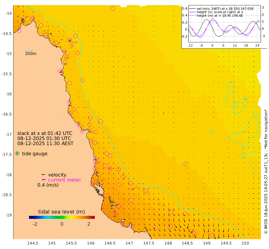 3cm/s -79T +11cm/s rms + 4cm/s -61T. GBRLSL 354m 14cm/s -174T +15cm/s rms + 2cm/s -84T. GBRLSH 32m 9cm/s 170T +15cm/s rms + 5cm/s -155T. GBRPPS 72m 5cm/s -160T +17cm/s rms + 13cm/s 115T. GBRMYR 223m 28cm/s 148T +18cm/s rms + 0cm/s -9T. NRSYON 29m 102cm Osprey Reef - West 104cm Stanley Island 84cm Pipon Islands 98cm Cape Melville 104cm Munro Reef 108cm Leggatt Island 117cm Normanby River 100cm Carter Reef 104cm Lizard Island (QLD) 100cm East Petherbridge Island 96cm North Direction Island 106cm Cape Flattery 106cm Ribbon Reef No.9 116cm Low Wooded Island 91cm Cape Bedford 74cm Endeavour River North 105cm Cooktown 106cm Cruiser Passage 104cm East Hope Island 94cm Bailay Creek 98cm Low Islets 108cm Port Douglas 112cm Palm Cove 112cm Yorkeys Knob 103cm Michaelmas Cay 89cm Euston Reef 111cm Cairns 107cm Green Island 106cm Fitzroy Island 109cm Sudbury Cay 109cm High Island 96cm Russell Island 108cm Peart Reef 106cm Nathan Reef 112cm Mourilyan Harbour 111cm Cowley Beach 110cm North Barnard Island 116cm Eddy Reef 144cm Beaver Reef 114cm Unnamed Reef No. 1 102cm Flinders Reef 117cm Clump Point 120cm Dunk Island 112cm Barnett Patches 126cm Goold Island 130cm Cardwell 118cm Britomart Reef 111cm Pith Reef 117cm Dip Reef 126cm Lucinda (Offshore) 112cm John Brewer Reef 129cm Albino Rock 112cm Shrimp Reef 107cm Jaguar Reef 132cm Townsville 128cm Cape Ferguson 119cm Stanley Reef 114cm Wallaby Reef 117cm Kennedy Reef